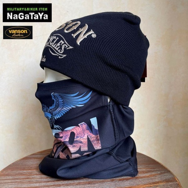■ バイカー系 VANSON バンソン イーグル エンブレム プリント 4Way 抗菌防臭 UVカット 吸水速乾 ドライネックウォーマー キャップ NVNW-2203 ■