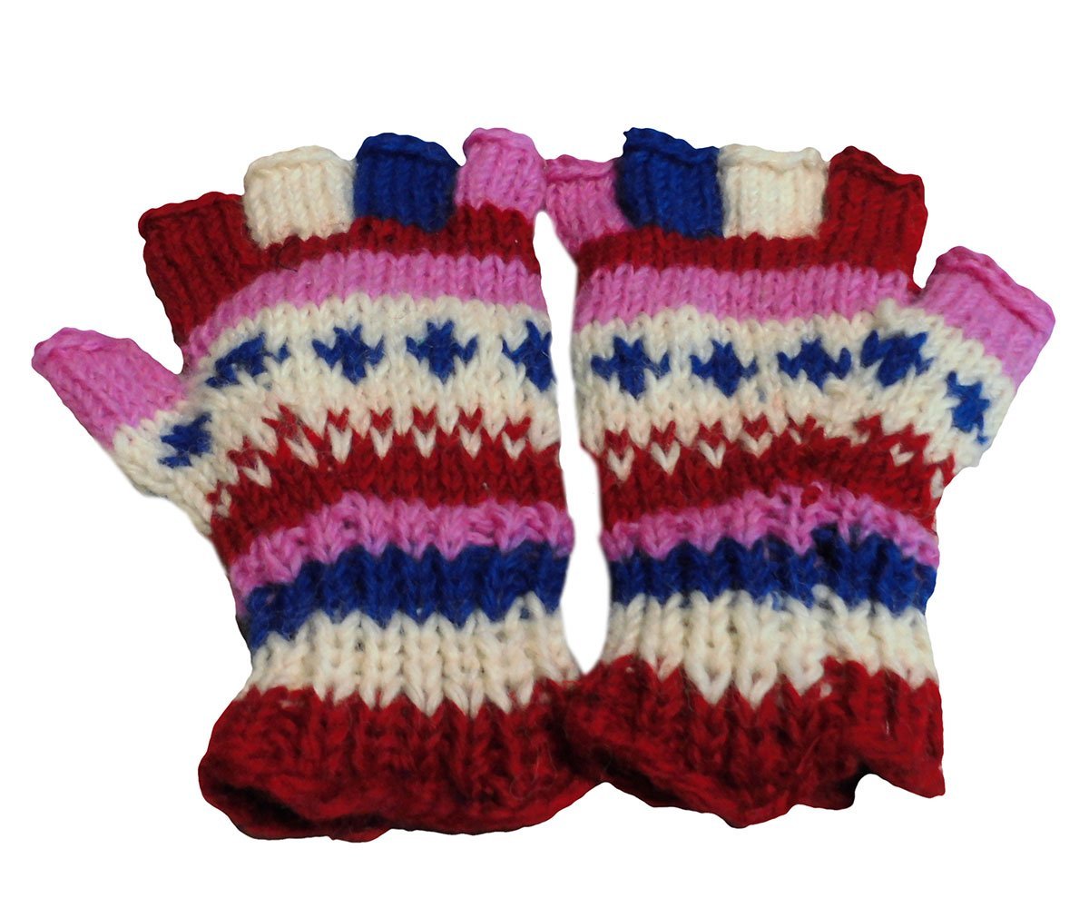 ■☆アジアン衣料 ネパール・ウール指無し手袋 裏フリース付き(NGN-44)