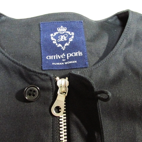Arrive paris  ヒューマンウーマン コットン 濃紺ノーカラージャケット Mサイズ