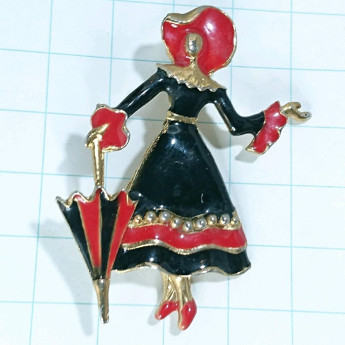 送料無料)ビンテージ☆傘を持つ貴婦人モチーフ☆アンティークブローチ A12784