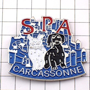 | "ピンバッジ・カルカッソンヌ黒犬と白猫/SPA動物愛護"の商品説明 | |
