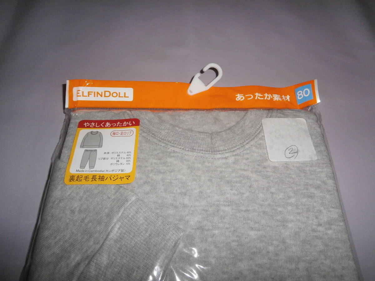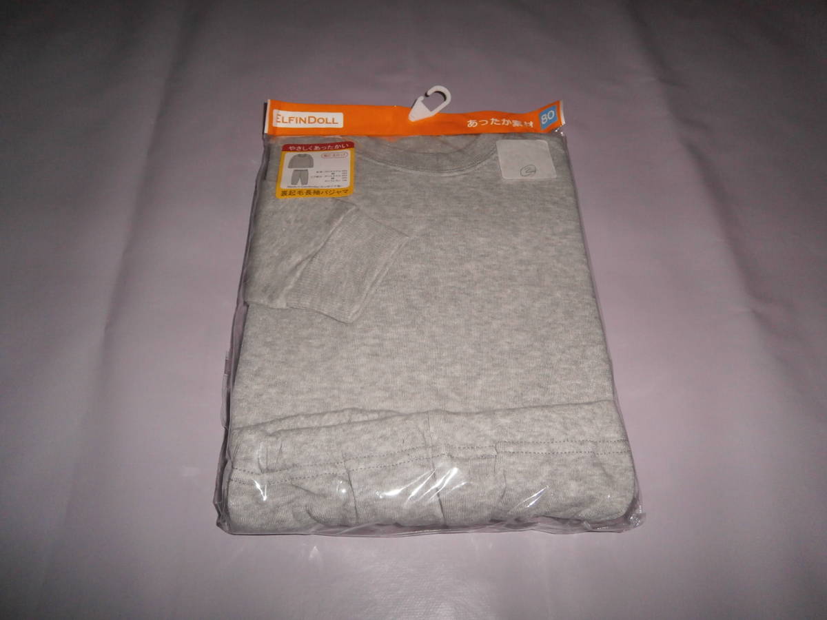 | ★新品★男児男の子★裏起毛長袖パジャマ★サイズ80★②★あったか素材★グレー 無地★ | ||