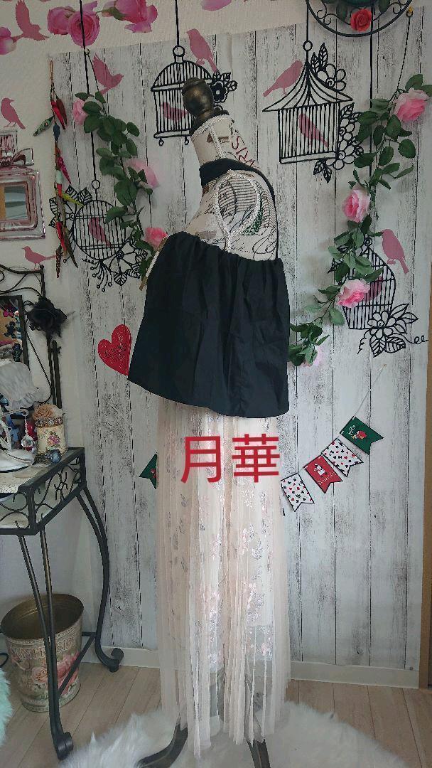 F:着丈(裏地48cm/刺繍メッシュ63cm/プリーツチュール74cm) ウエストゴム60~96cm