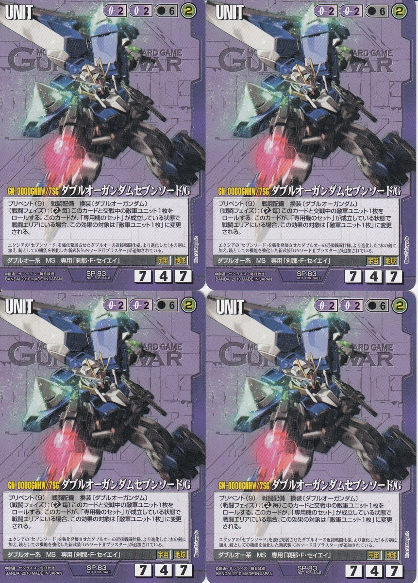 ☆ガンダムウォー GUNDAM WAR 紫 ユニット SP-83 ダブルオーガンダムセブンソード/G PRプロモトレカ 4枚