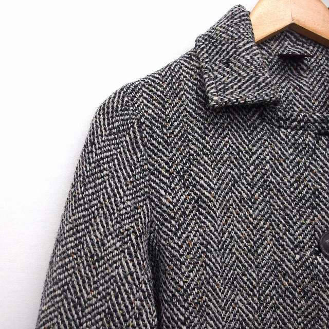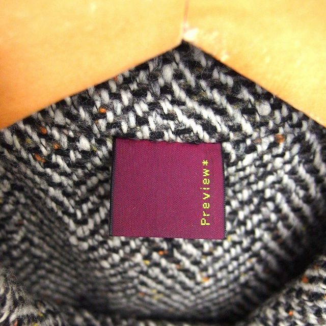 プレビュー PREVIEW ステンカラー コート ミディ丈 ウール混 総柄 ベルト M ブラック 黒 /HT11 レディース