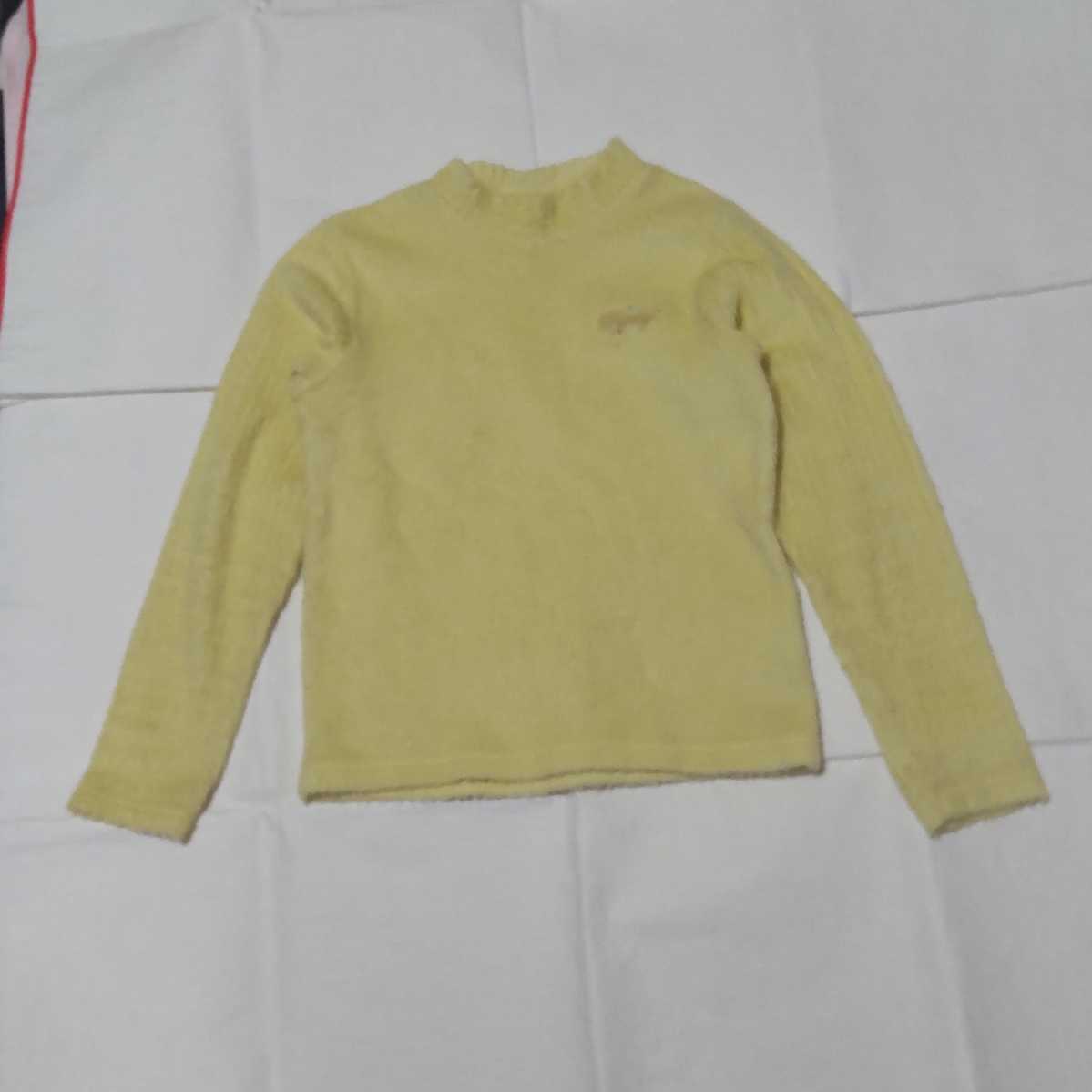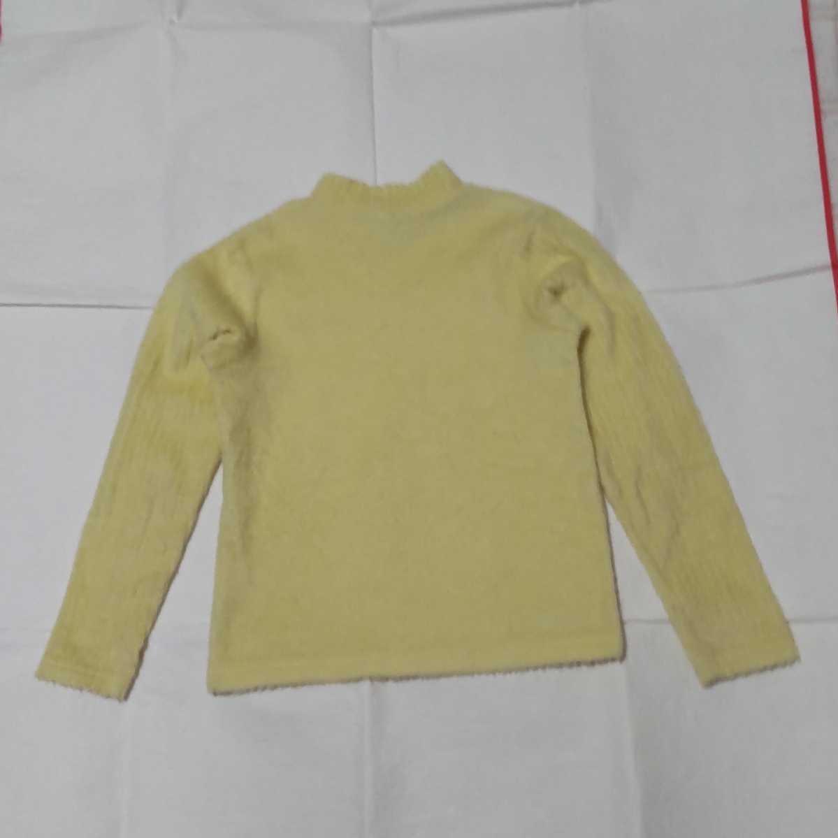黄色のセーター。160サイズ。ふわふわ柔らか。袖が違う編み方になってます。オシャレ。クリーニング済。裏にお名前札がついてます。左胸に刺繍あり。胸囲76c~84cm。身長156~165cm。ノークレームノーリターンでお願いします。