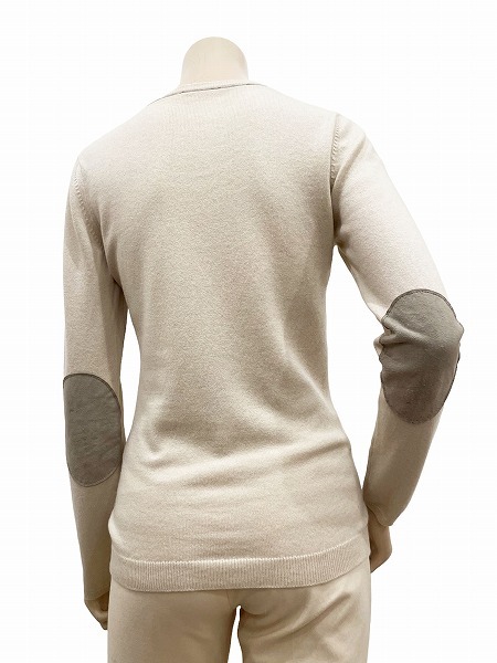 QM極美品☆ブルネロクチネリ*BRUNELLO CUCINELLI★カシミヤ100%★ベージュ系★本革*シープレザーパッチ★高級Vネックセーター★Sサイズ/冬