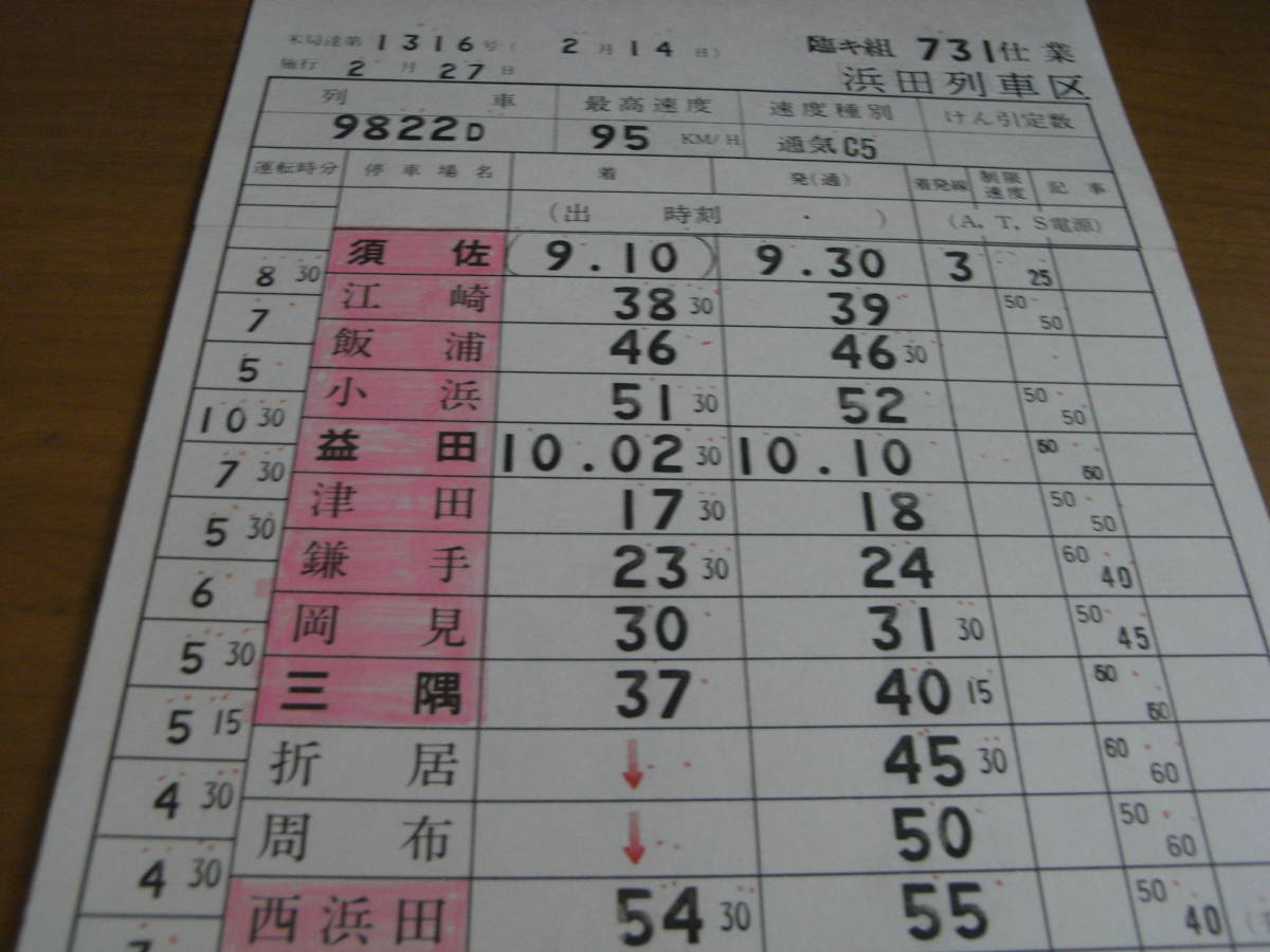 スタフ 山陰本線 浜田列車区 臨キ731仕業 9822D 須佐-浜田 ●運転士時刻表