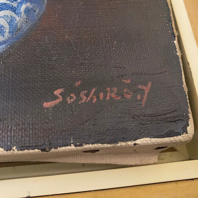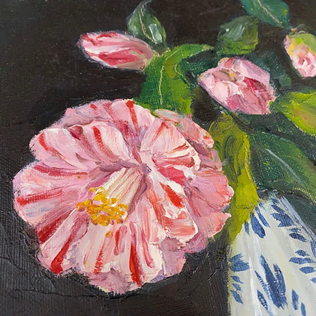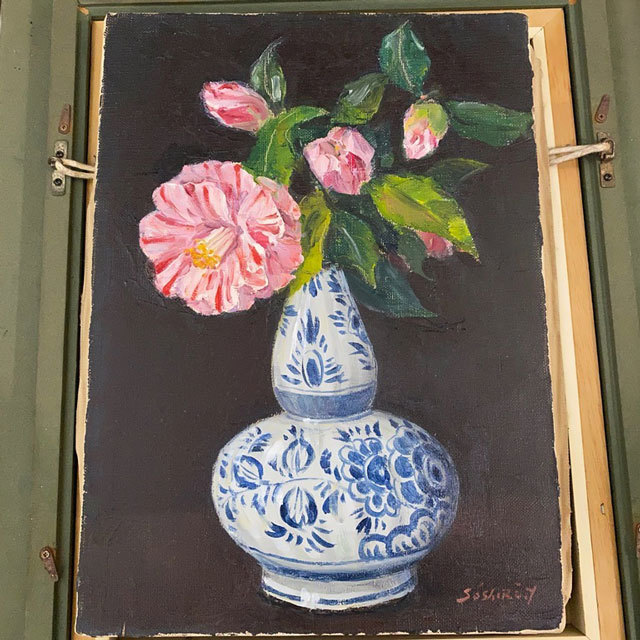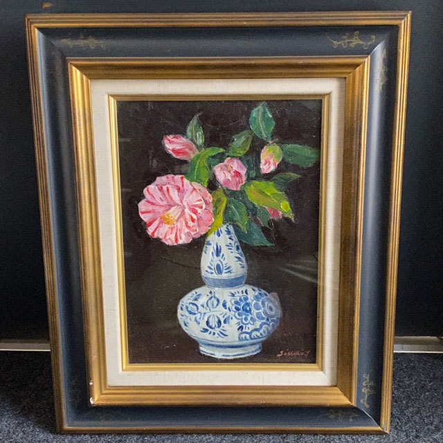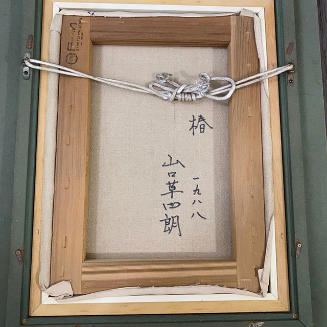 山口草四郎 椿 油彩4号 一水会会員 油絵 1988年 額装