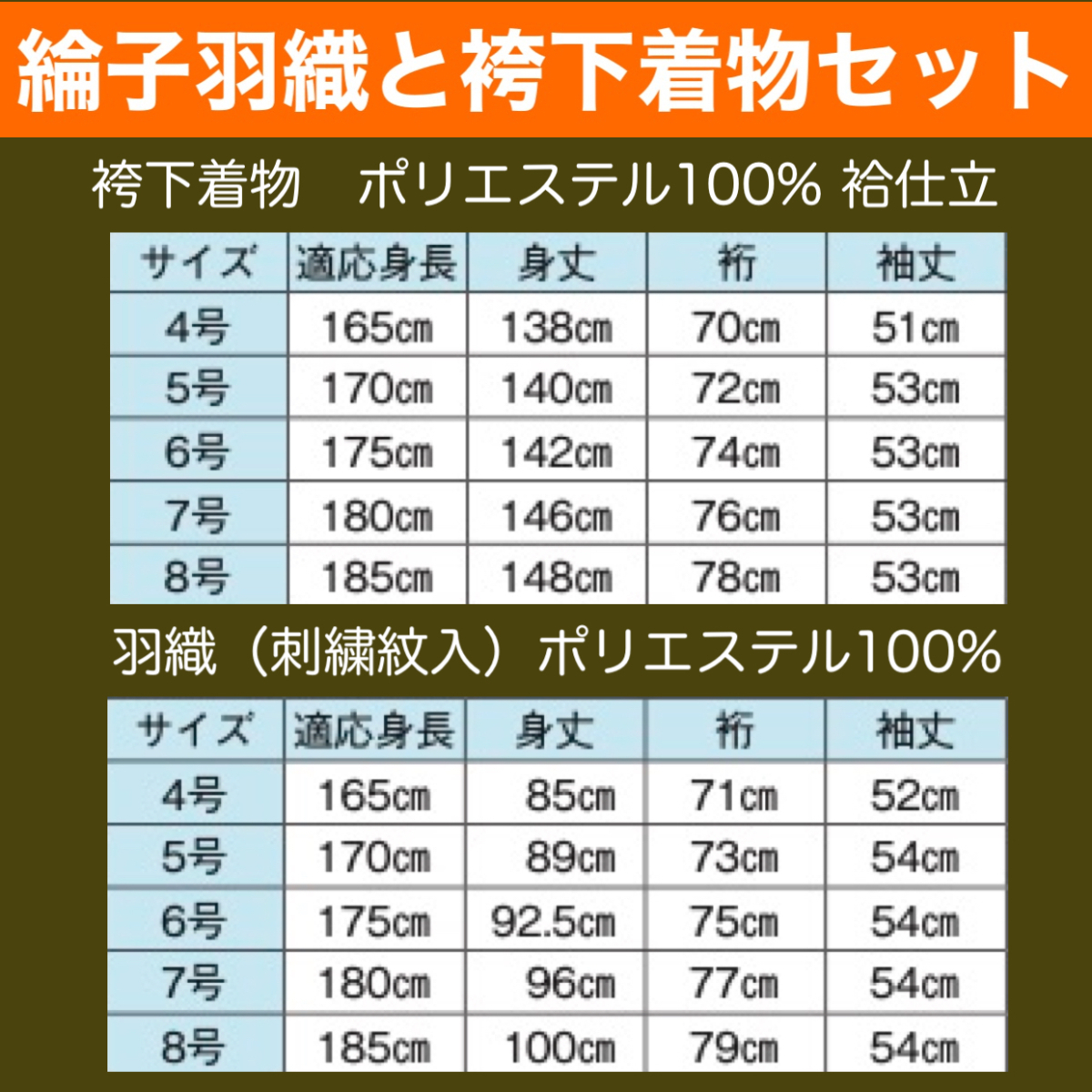 綸子羽織と袴下着物・袴セット 着物 羽織 袴  K-180-25232 5号(身長:170cm)