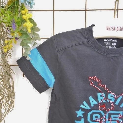 オシュコシュ OshKosh キッズ 男の子 春夏に着て頂けそうな半袖 Tシャツです。お色はグレーにブルーのプリントと刺繍がカッコイイ一品です。