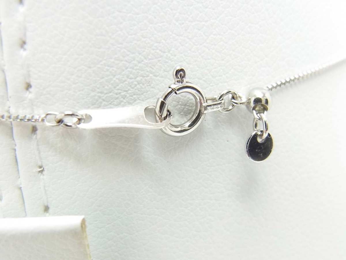 ネックレスは最長45cmのフリー調整ネックレスでお好みの長さで使えますので何本もチェーンネックレスを持つ必要が無く大変重宝するネックレスで御座います。