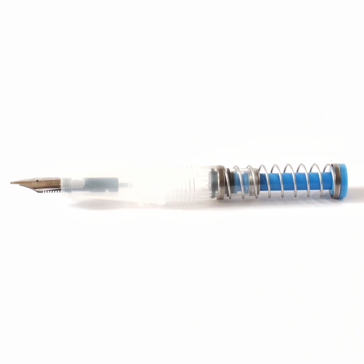 ステンレス製スプリングのバネを1回プッシュするだけで1.5mlものインクがバレル(胴軸)に入ります。