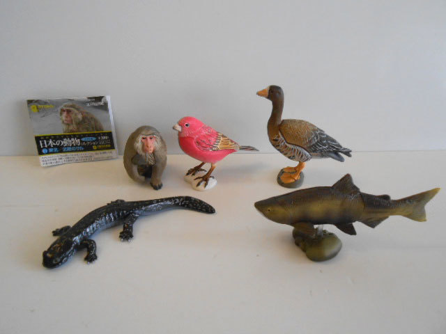 1.ニホンザル 2.マガン 3.オオマシコ 4.クニマス 5.トウホクサンショウウオ ◇海洋堂カプセルQミュージアム 伝説のフィギュア復活! 日本各地の多彩な動物達を 松村そのぶが次々と立体化! |