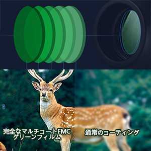 緑色のFMC反射防止コーティングにより、対物レンズの反射光を減らし、光の透過率、画像の明るさ、画像の明瞭度を改善しました。