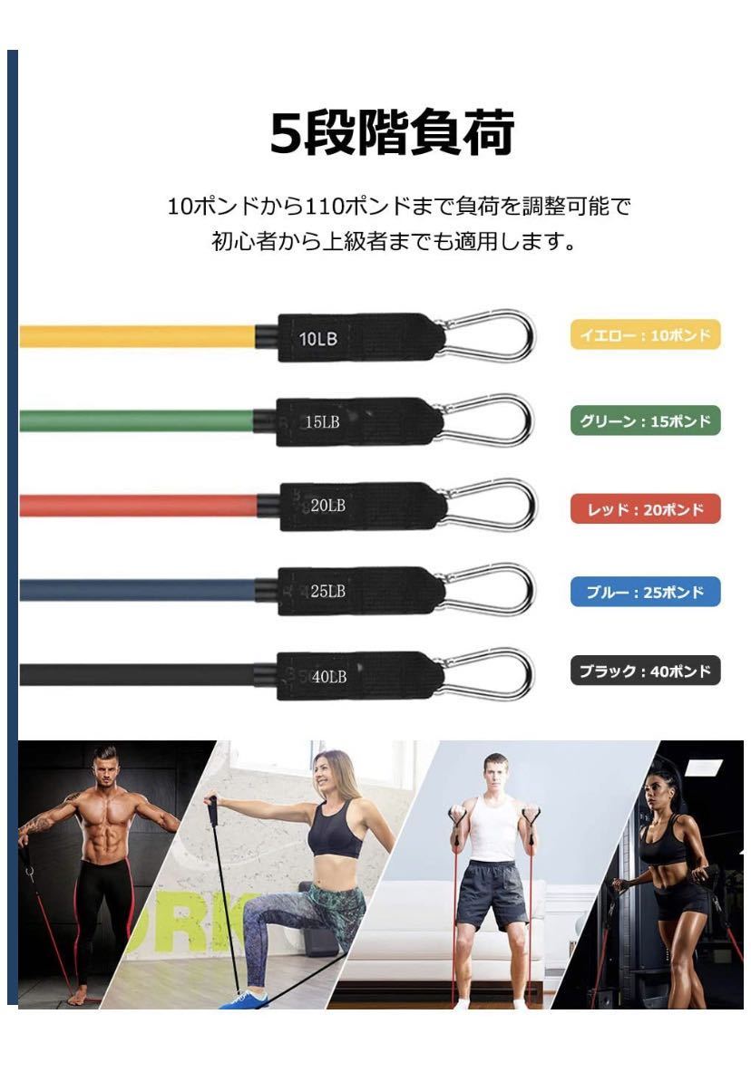【初心者から上級者まで適用の5段階負荷】10、15、20、25、40ポンドの5本チューブが組み合わせて10ポンドから110ポンドまで負荷を調整してトレーニングを行うことができます。腹、背筋、体幹全身でもトレーニングできます。取り付けなど一切は不要で、届いてすぐ使えます。