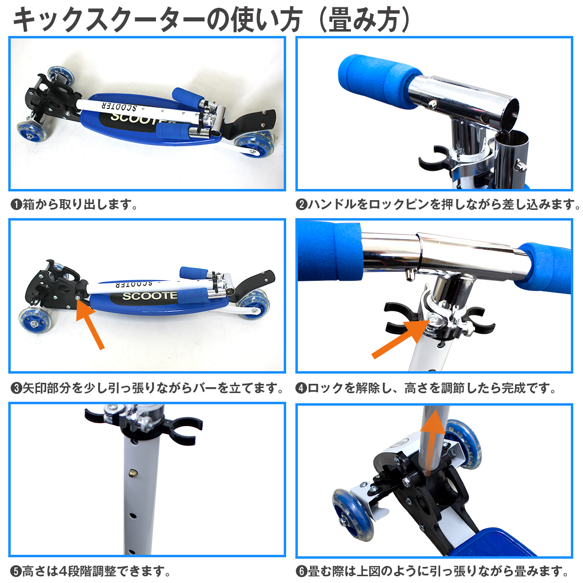 折り畳み式 三輪 キックボード イージースケーター キックスケーター ブルー 青 子供用 キッズ用 幼児 後輪ブレーキ