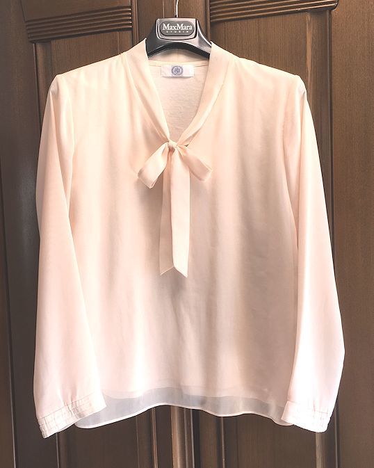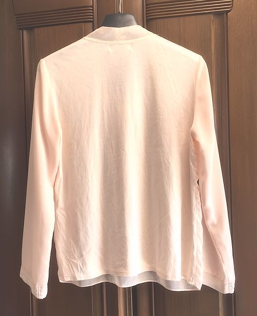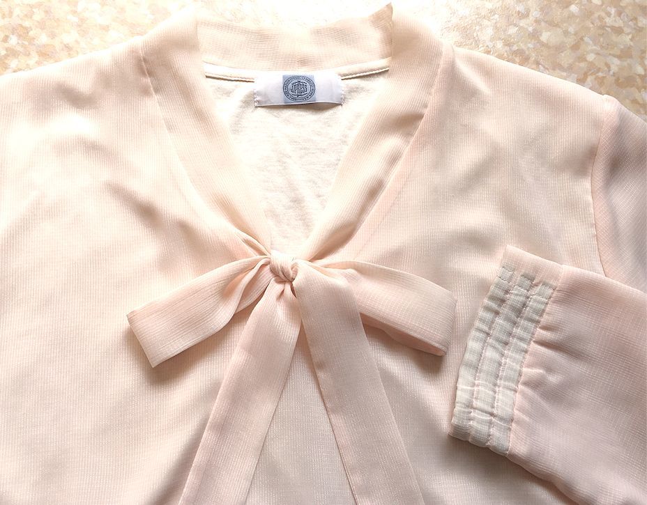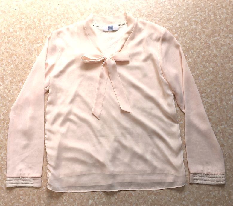 値下★J.PRESS Jプレス・オンワード★襟リボン・シアー重ねブラウス・カットソー裏地付き・ライトピンク・M★セレモニーにも★美品