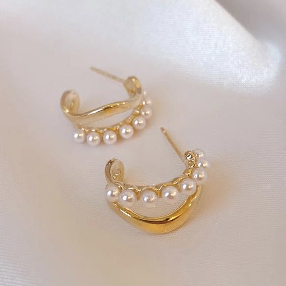 個性的なラインに小粒のパールが耳元を豪華に演出してくれます♪