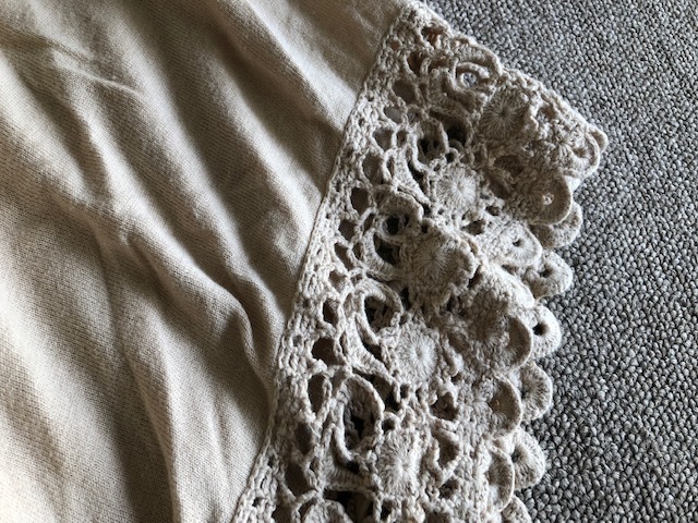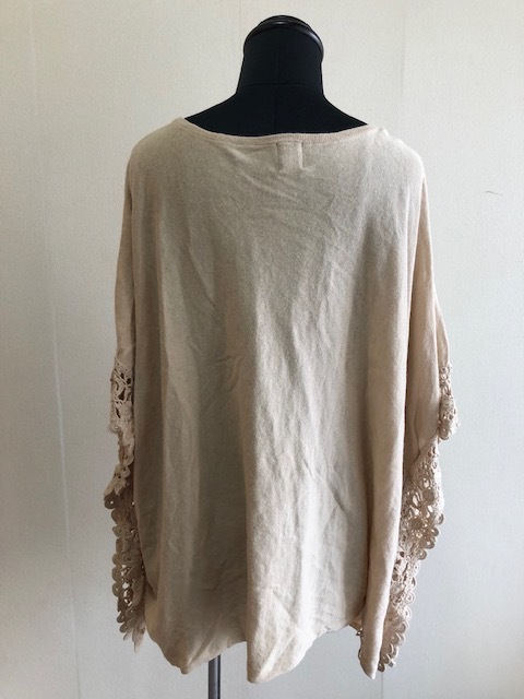 お袖部分の透かし編みレースがポイントの、さらっとした夏用ニットチュニックです。
