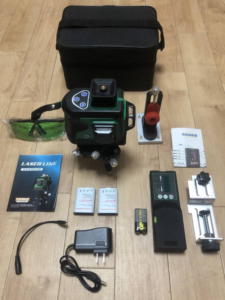 12ライン グリーン レーザー墨出し器/ 3D/墨出器/墨出し機/水平器/測定器/墨だし器 /自動補正機能/ 高輝度 高精度/ 受光器付き