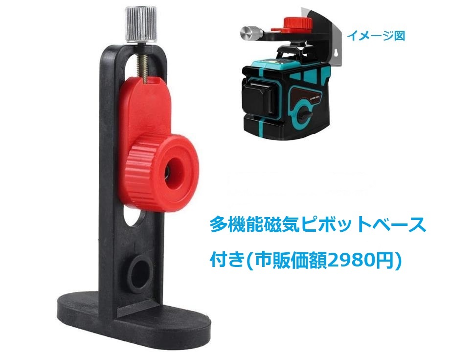 新品です  グリーンレーザー墨出し器用全波長受光器 と 多機能磁気ピボットベース(市販価額2980円)   など付いてます。