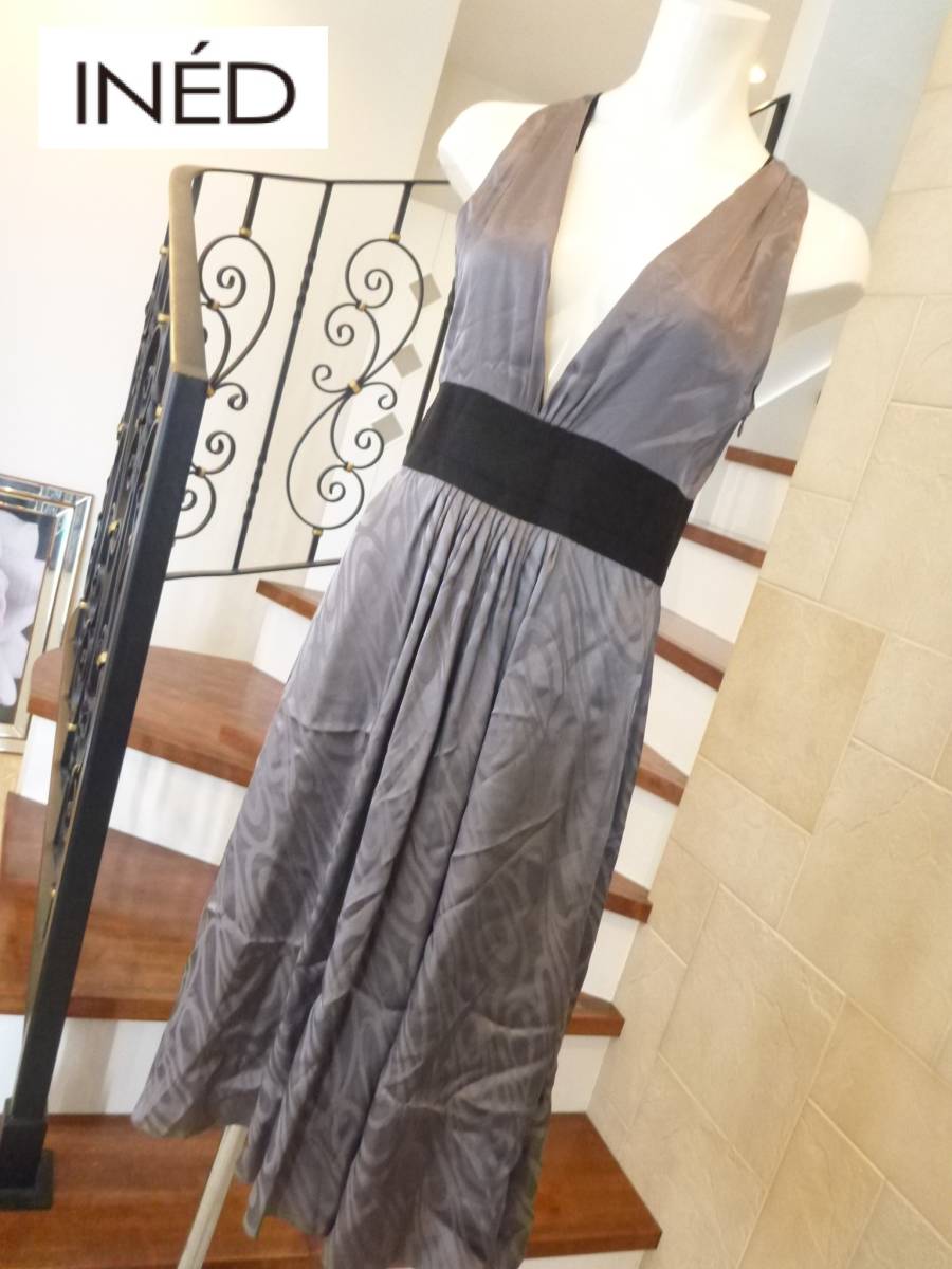 3万 美品 INED イネド★ 黒×グレー バイカラー ワンピース 9 M