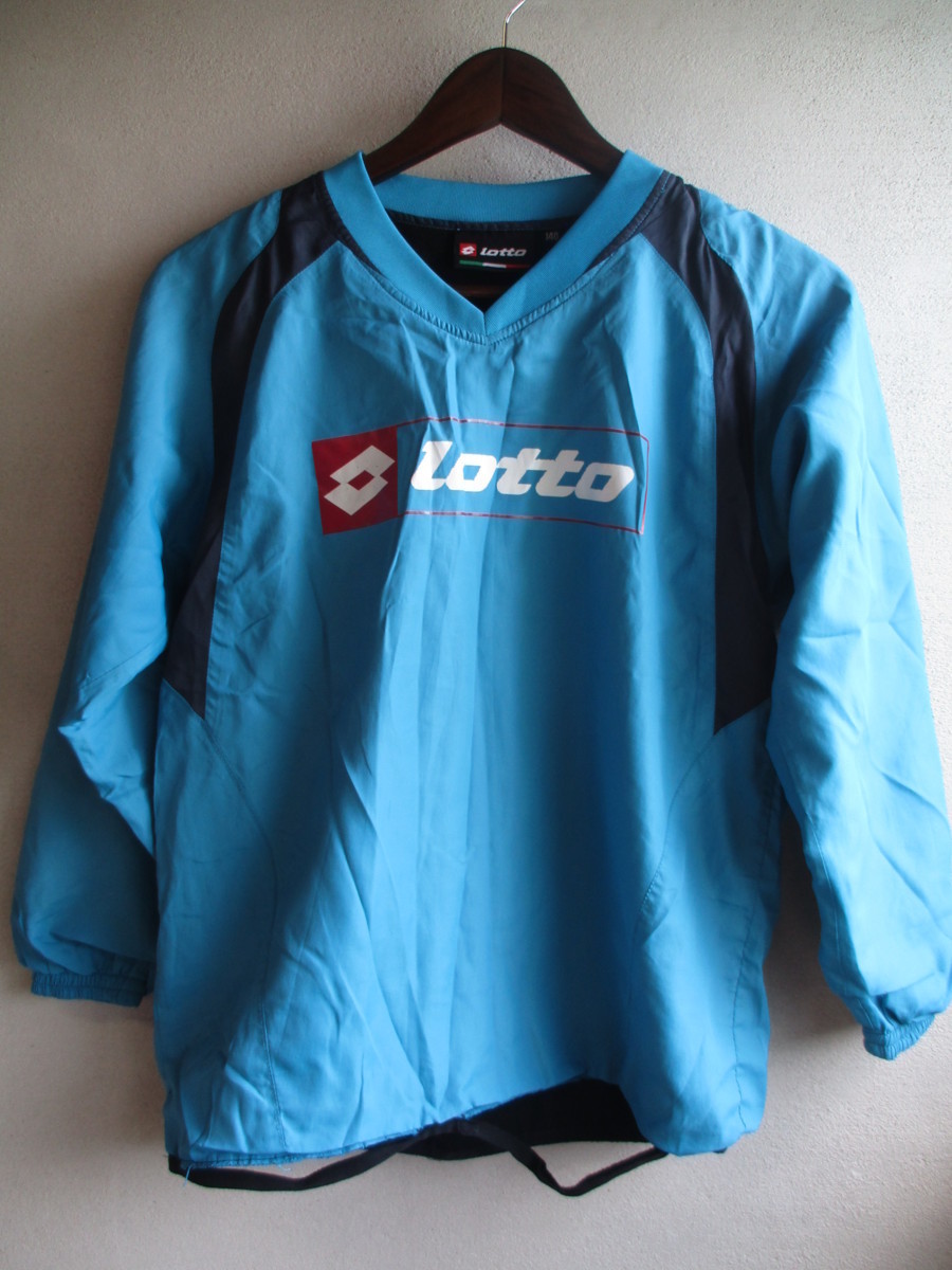 【lotto】 練習着 キッズ サイズ:140 色:ライトブルー 身丈:62 身幅:40 肩幅:38/MAN |