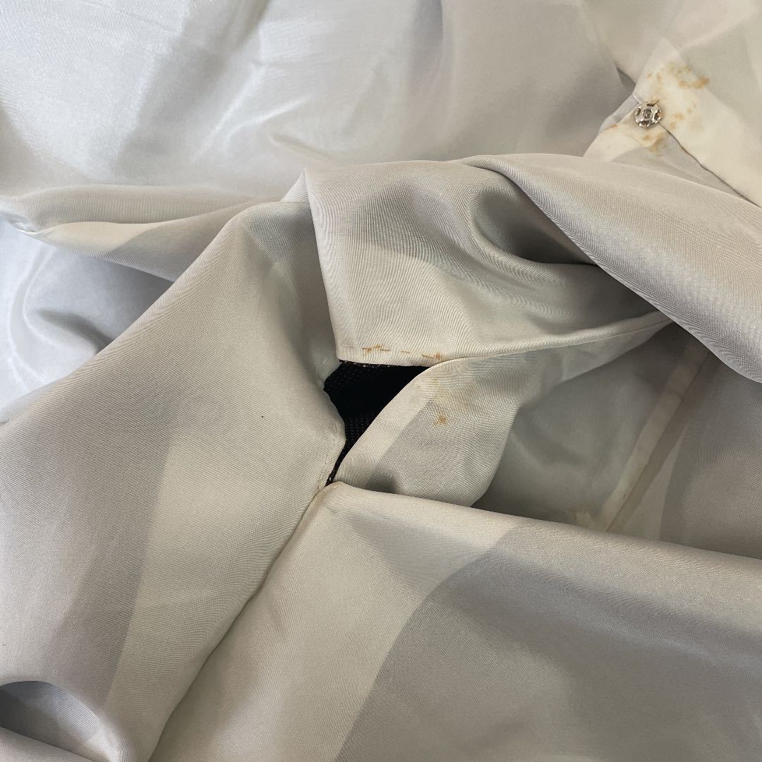 長期保管のため、襟裏留め具あたりと脇に汚れあり