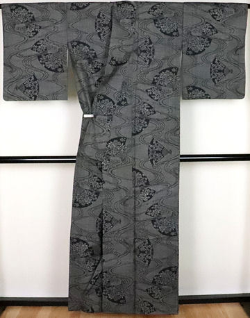 | 大島紬 袷 黒地花扇子柄織 157 広襟 | |