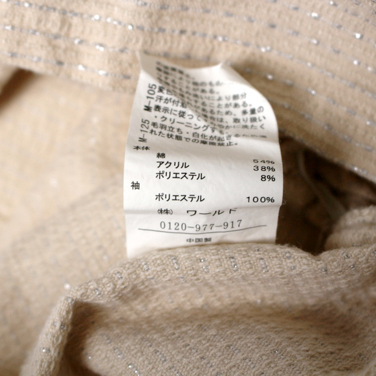 ブランド (株)ワールド INDEX インデックス 表記サイズ M 実 寸 (cm) 着 丈54 肩 幅31 袖 丈41 胸 周 り41 *** サイズの計り方は「サイズの計り方ガイド」をご覧ください *** 素材 ~画像の製品表記タグをご覧ください~ カラー ベージュ/シルバーラメ **画面上の色はブラウザや設定により、実物とは異なる場合がございます。*** 実物に近いお色をお伝え出来る様努めておりますがご了承の上ご入札頂きます様お願い致します。 商品情報 可愛いとろみ切り替えのコットンラメカットソーです。 ★ こちらの商品の発送方法はネコポス(300円)不可、レターパックライト(360円)、クロネコヤマト宅急便(680円:北海道・沖縄1000円)です。 (アクセサリー、ハンガーは出品物では御座いません。) ランク (B ) (S) 新品・未使用品 (A) 数回着用程度の超美品 (B) ダメージ無く綺麗な状態の美品 (C) 多少使用感のある一般的なUSED品 (D) 傷、汚れがあり使用感を感じるUSED品 (E) 難有。訳あり品 ※ ランクはあくまで主観によるものです。参考程度とお考えください。 ※ 新品・未使用の商品も「写真撮影」 「保管状況」などにより、小さな傷、かすかな汚れ、毛玉、シワがある場合がございます。お安く出品しておりますので、ご理解の上入札をお願い致します。