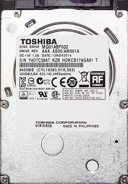 TOSHIBA MQ01ABF032 2.5インチ 7mm SATA600 320GB 42回 16793時間