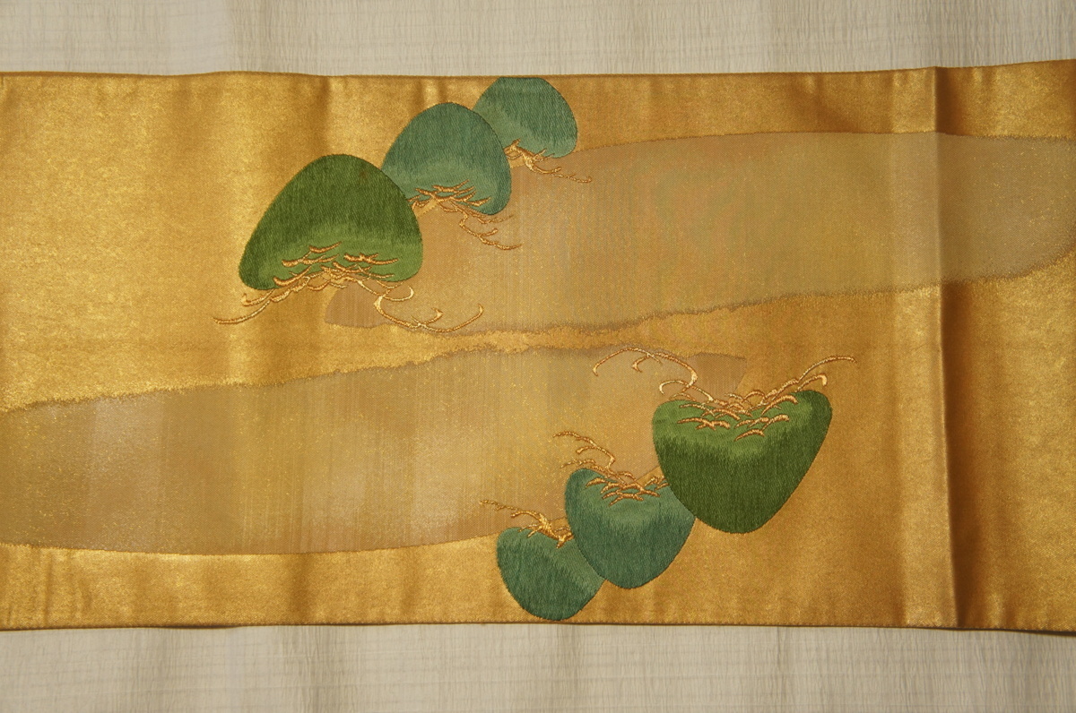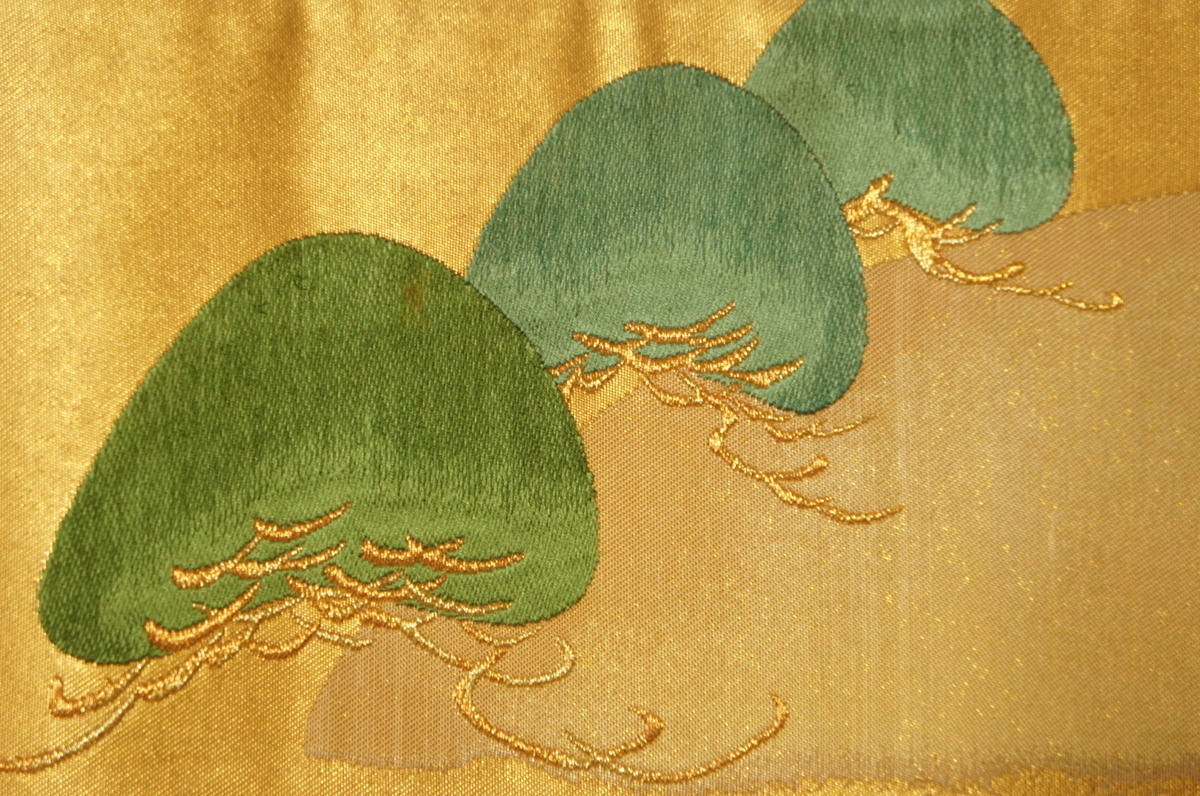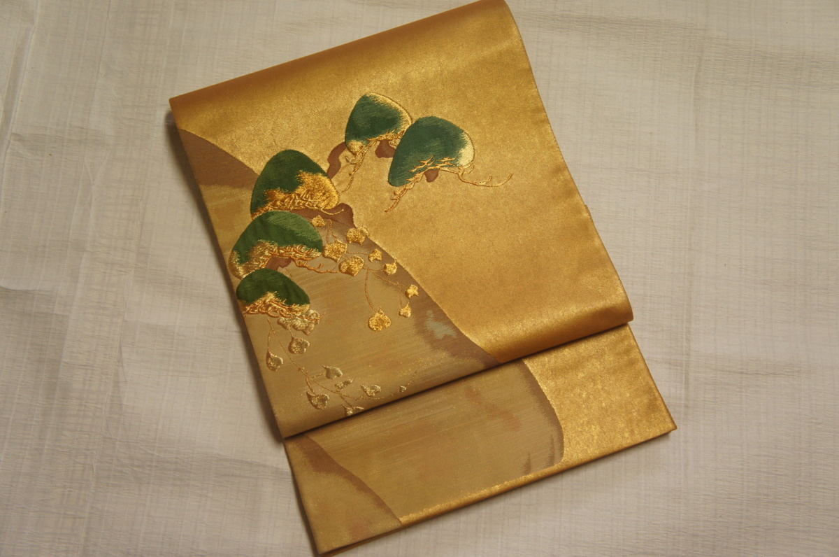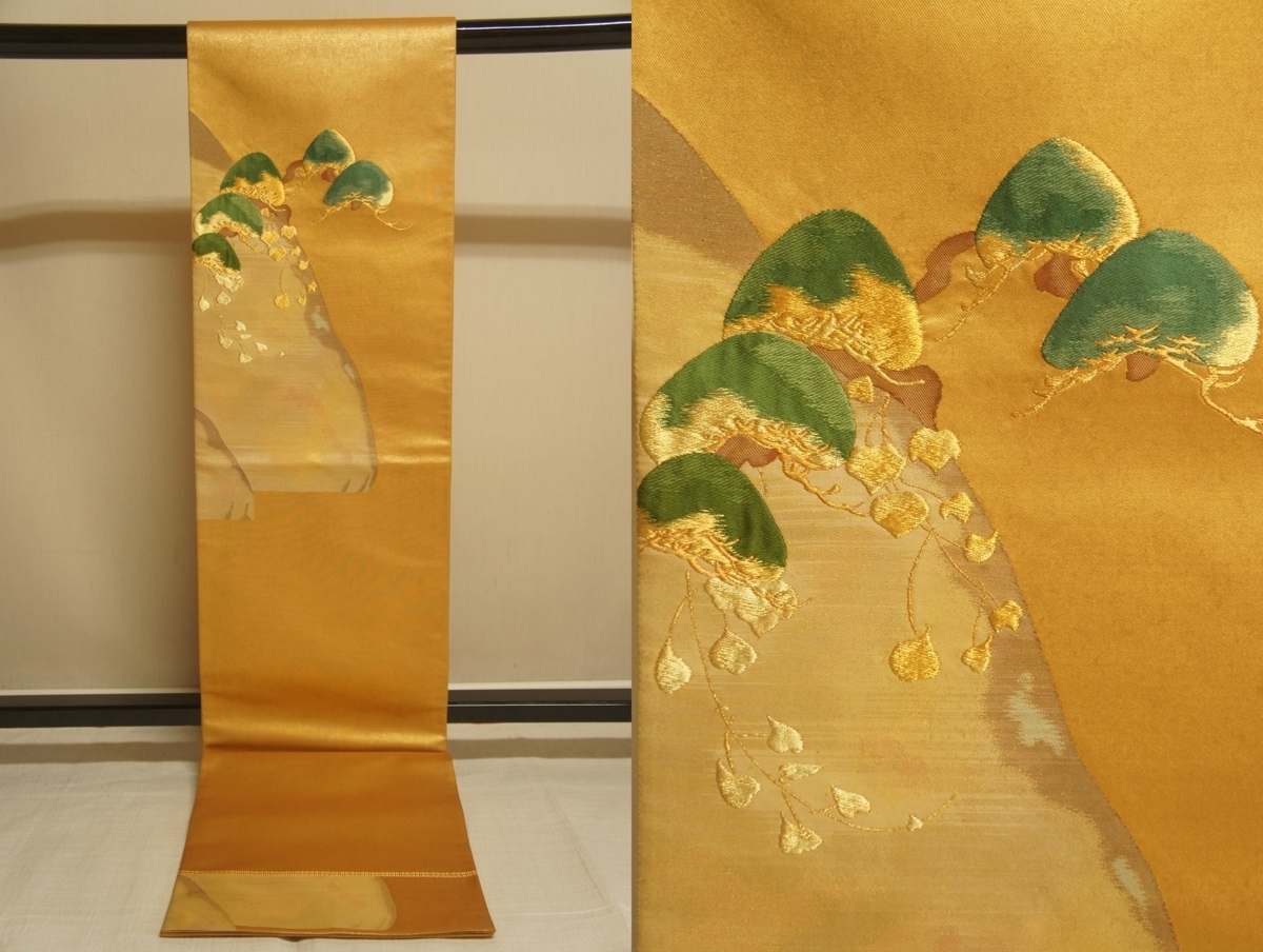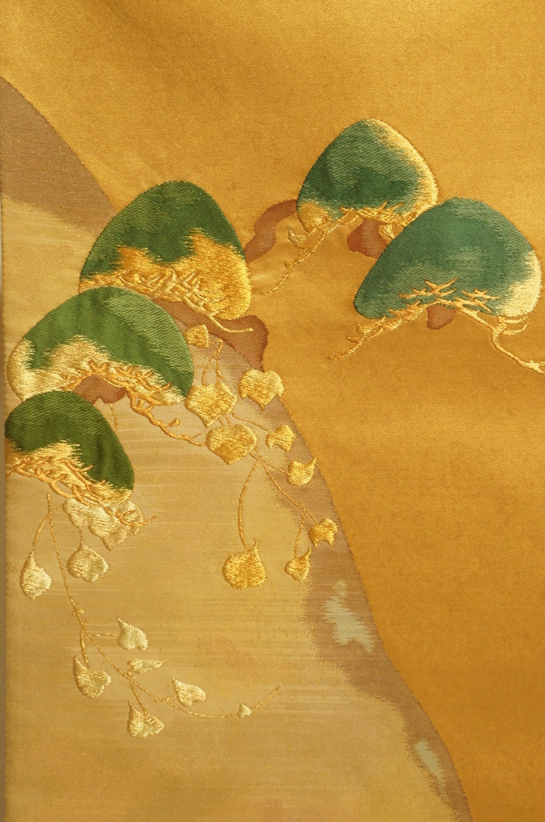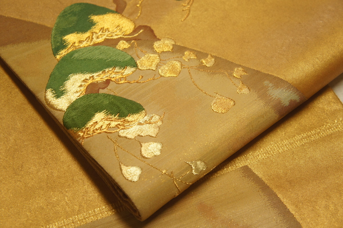 帯柄附太鼓柄 本金箔錦手織り蔦の細道山路松紋模様袋帯