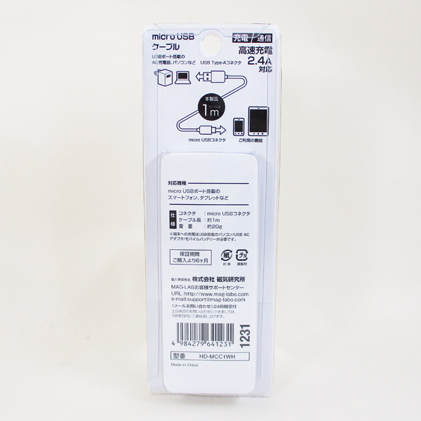 同梱可能 マイクロUSB microUSBケーブル1m 白 スマホ/タブレット高速充電/データ通信 HIDISC HD-MCC1WH/1231x2本セット/卸
