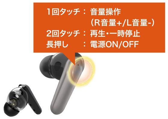 タッチ式センサー搭載、イヤホンでかんたん操作