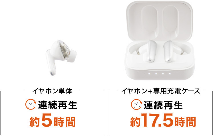 ケース充電(2.5回)で合計17.5時間の長時間再生