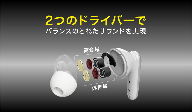 6mmデュアルダイナミックドライバー搭載 左右独立型の完全ワイヤレスイヤホン
