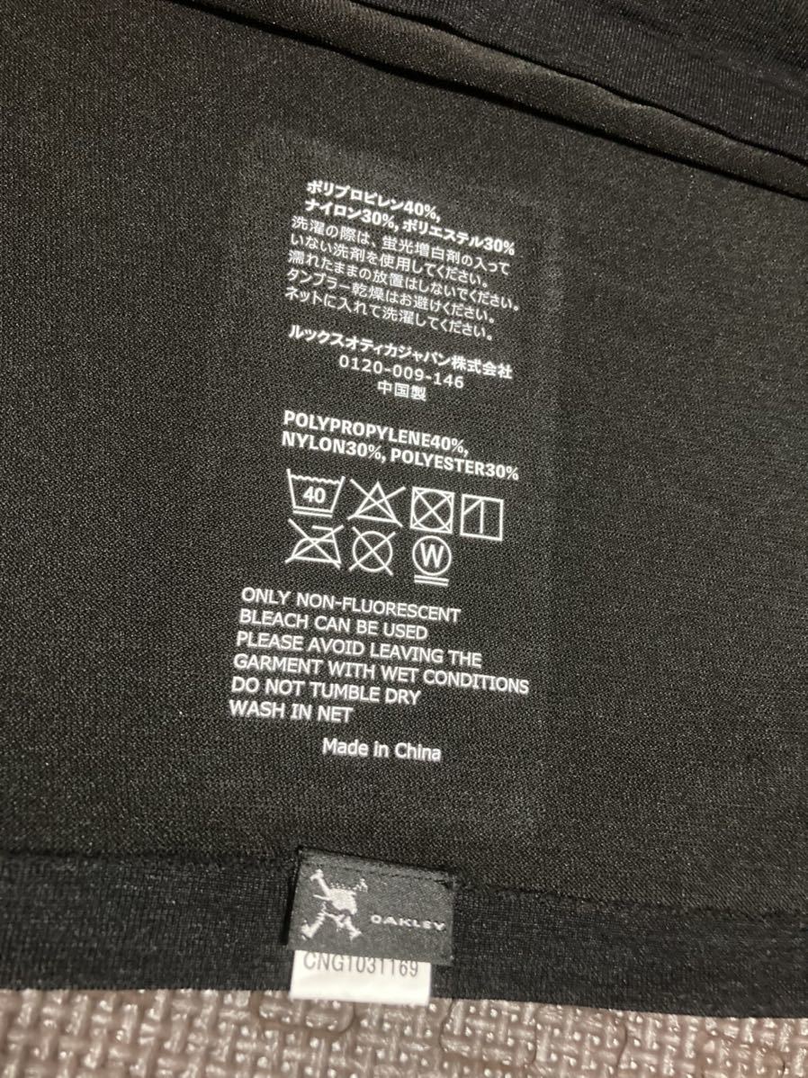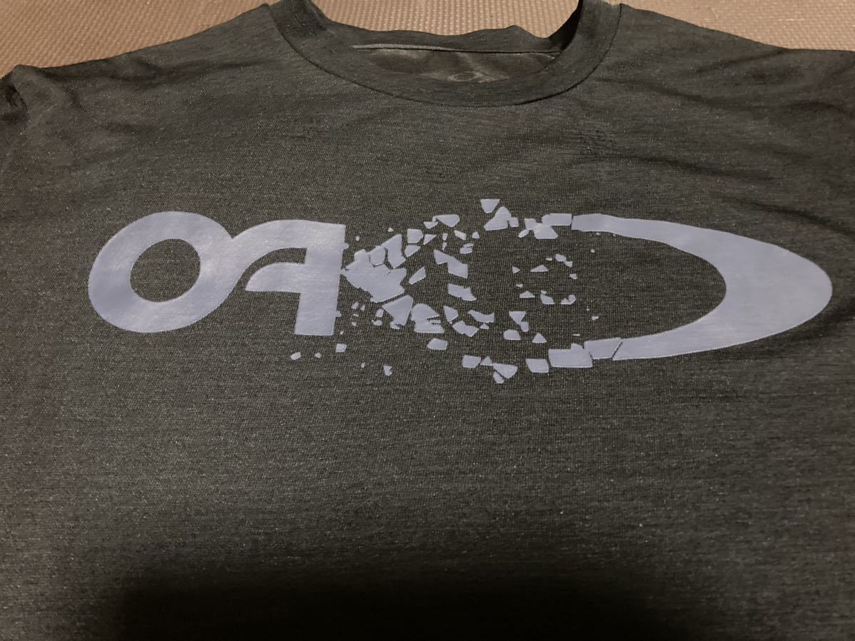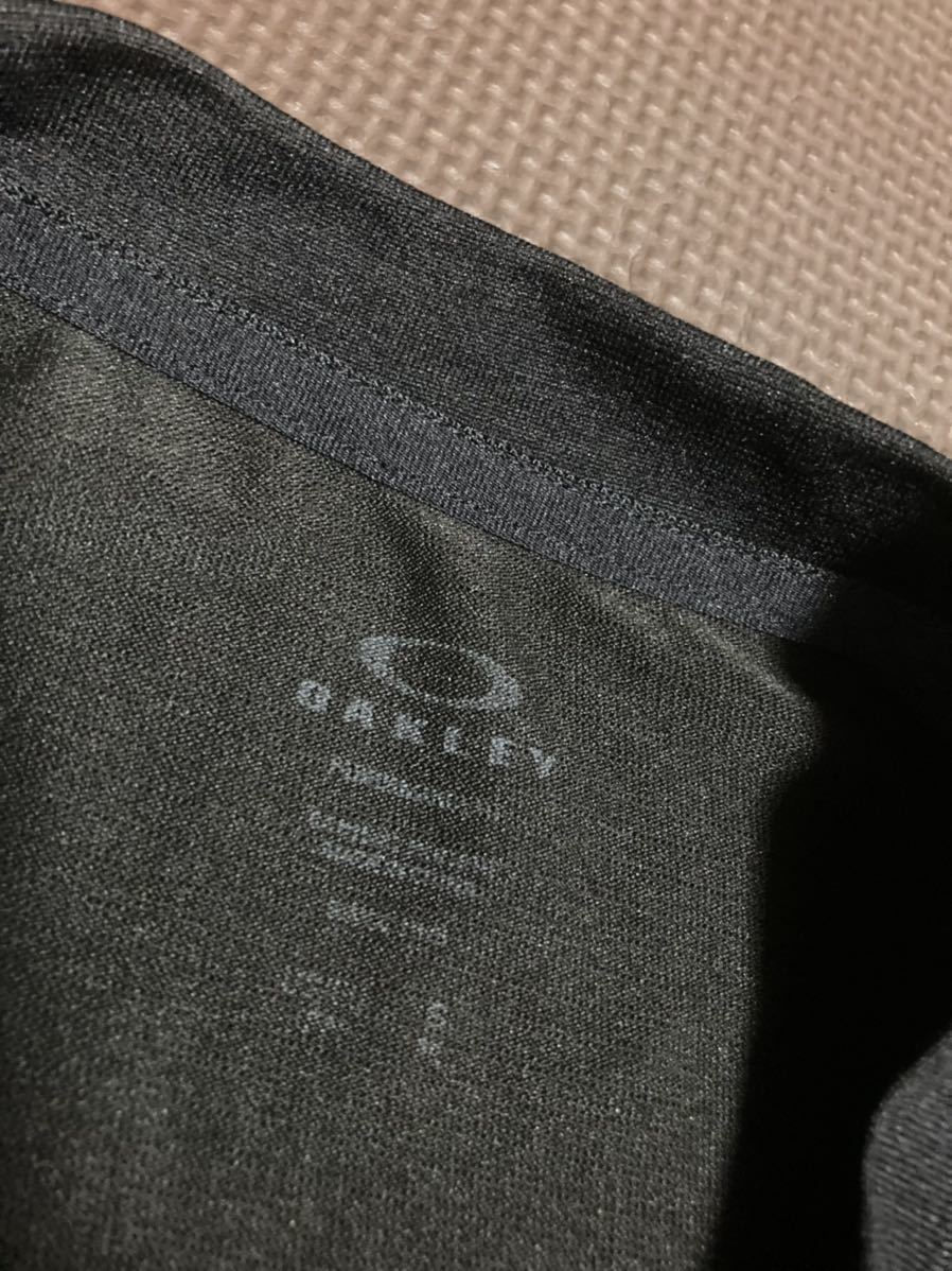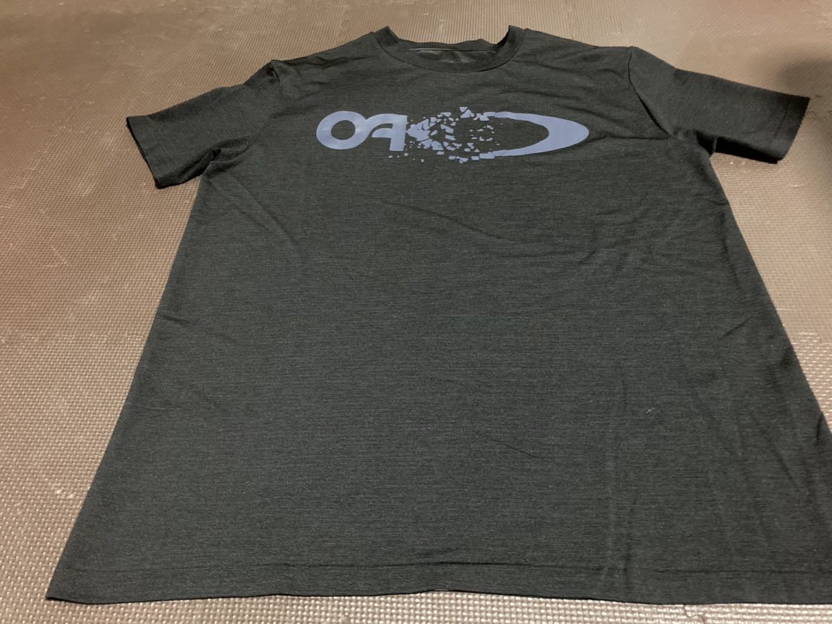 新品OAKLEY黒、ロゴ薄いグレー半袖ストレッチトップス