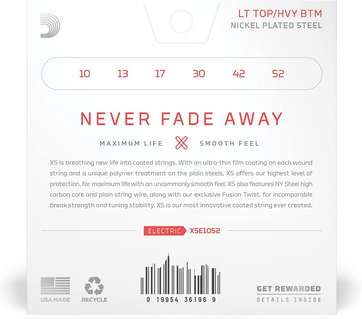 D'Addario ダダリオ エレキギター弦 XS コーティング弦 ニッケル Light Top/Heavy Bottom .010-.052 XSE1052 【国内正規品】これまでのコーティング弦というカテゴリーに新風を吹かせる『XS シリーズ 』エレキギター弦髪の毛の10分の1の厚さを下回る極薄のePTFEフィルムを採用ゲージ: Light Top/Heavy Bottom .010-.052