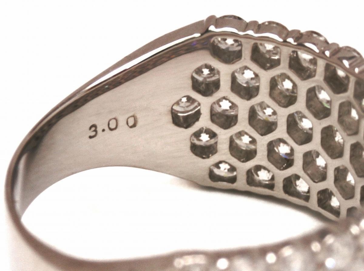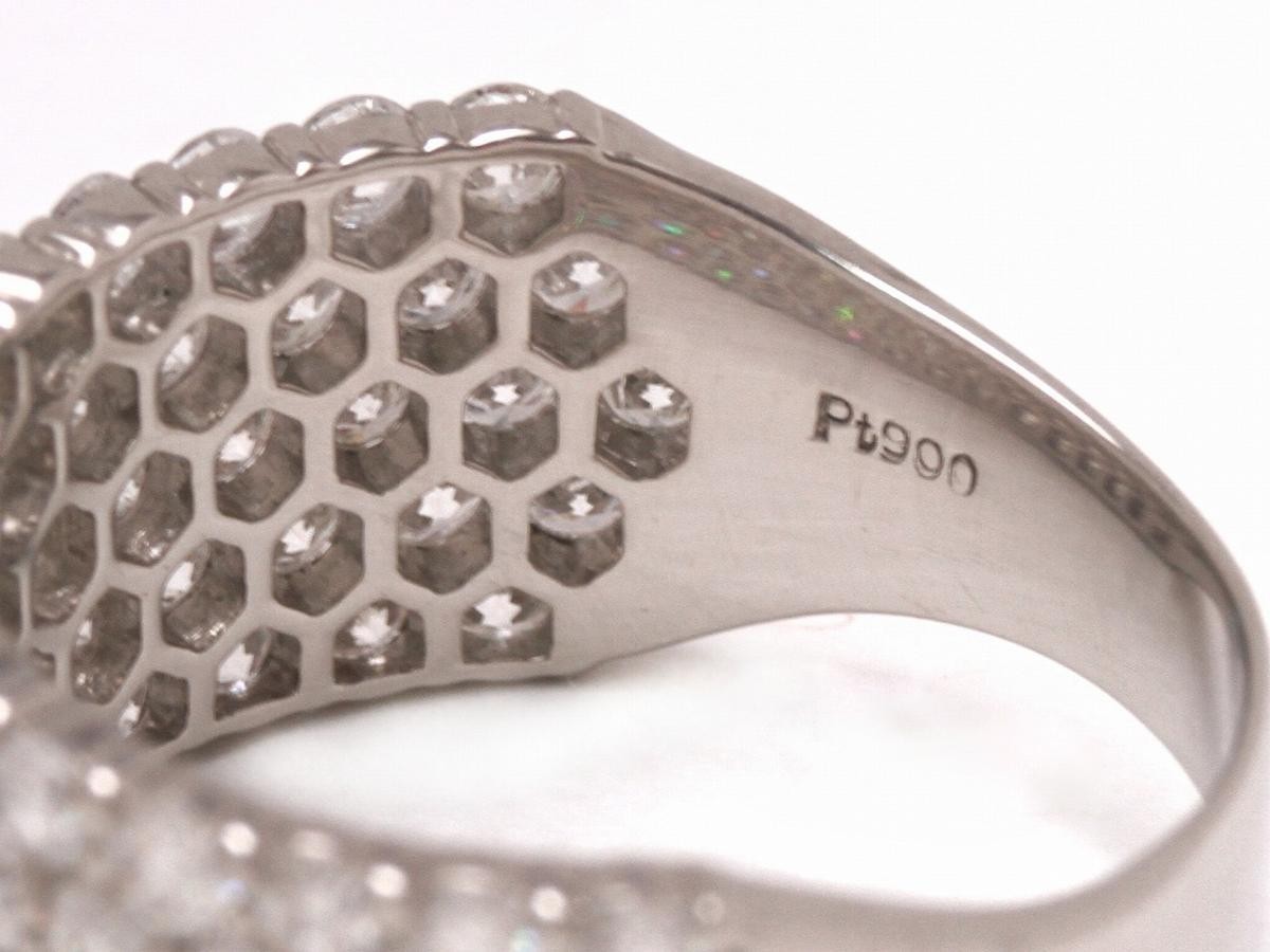 | サイズ・仕様 | サイズ:15号 最大幅:約9.5mm 重量:7.2g 素材:プラチナ、ダイヤモンド Pt900、3.00の刻印があります。 |