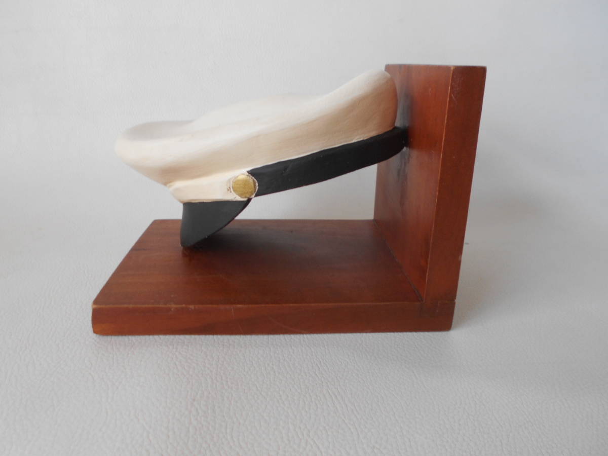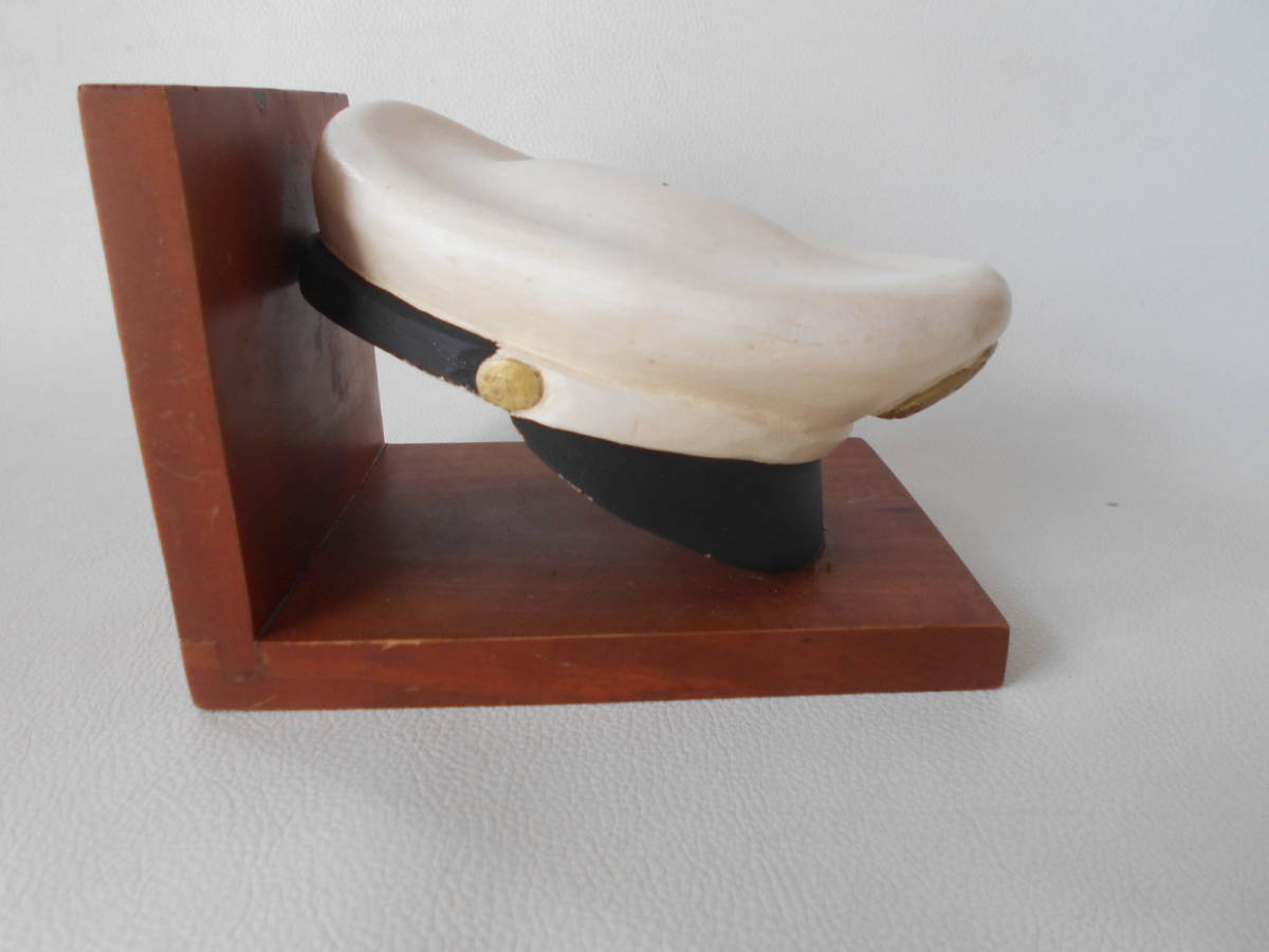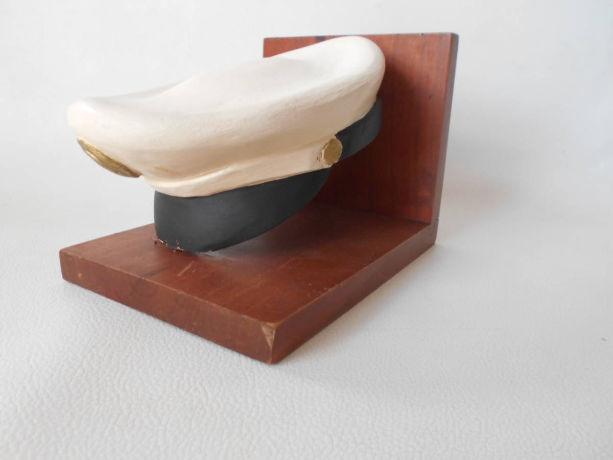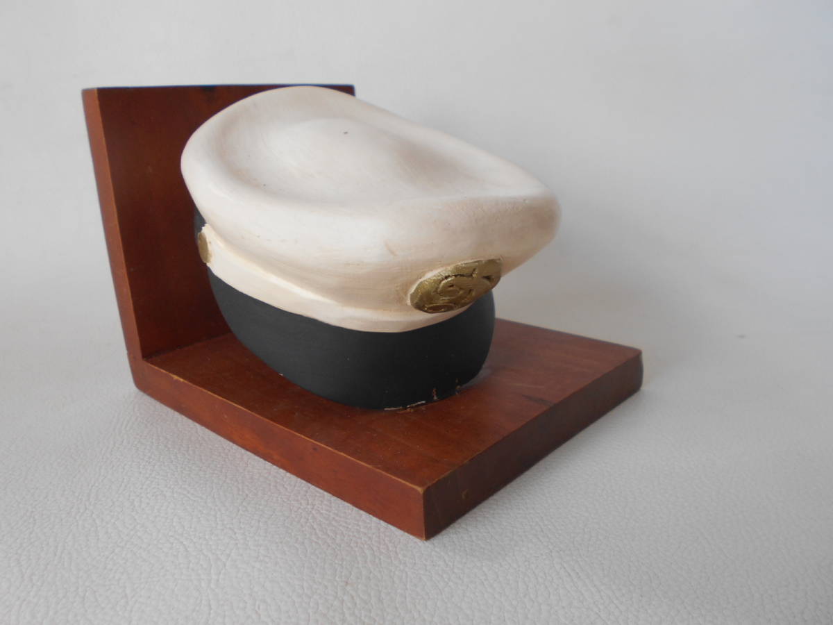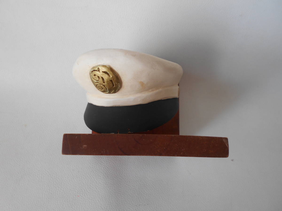 木彫 船長がかぶる様な帽子 マリンキャップ 帽子のオブジェ 中古品