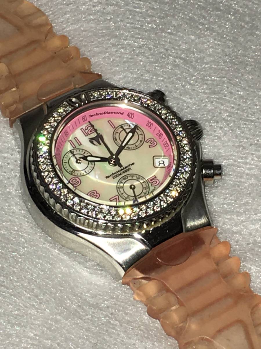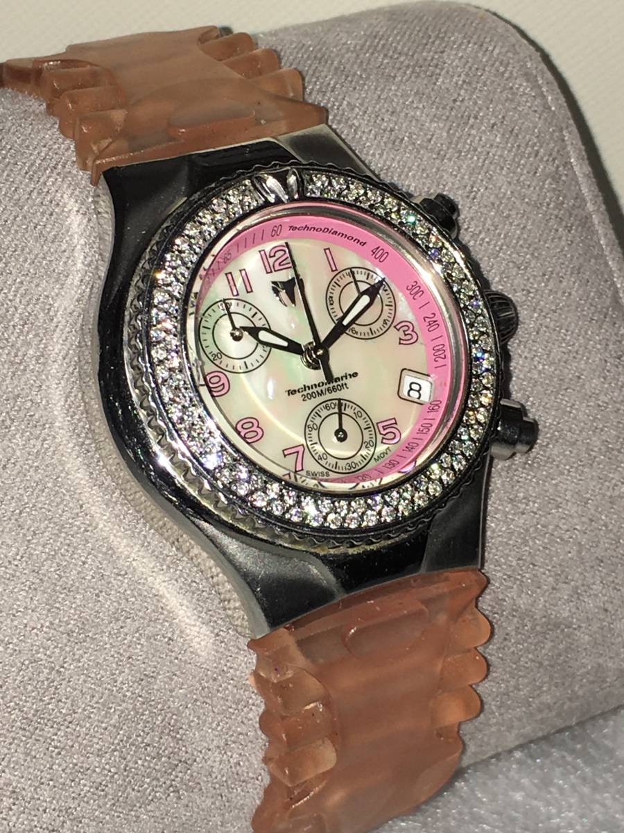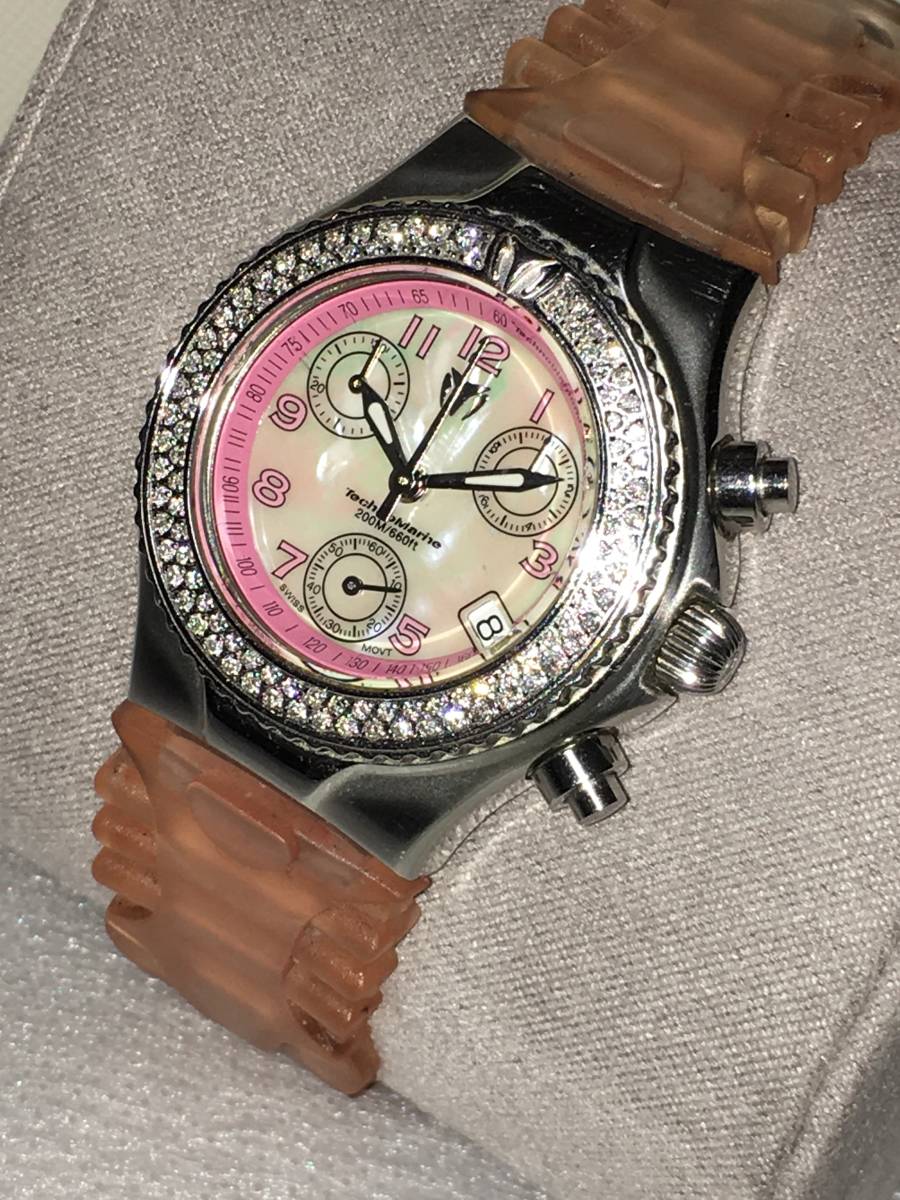 テクノマリーン クロノグラフ ダイヤベゼル USED品 ピンク