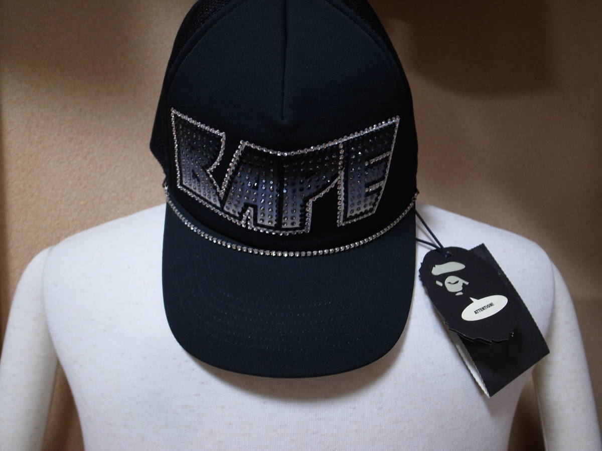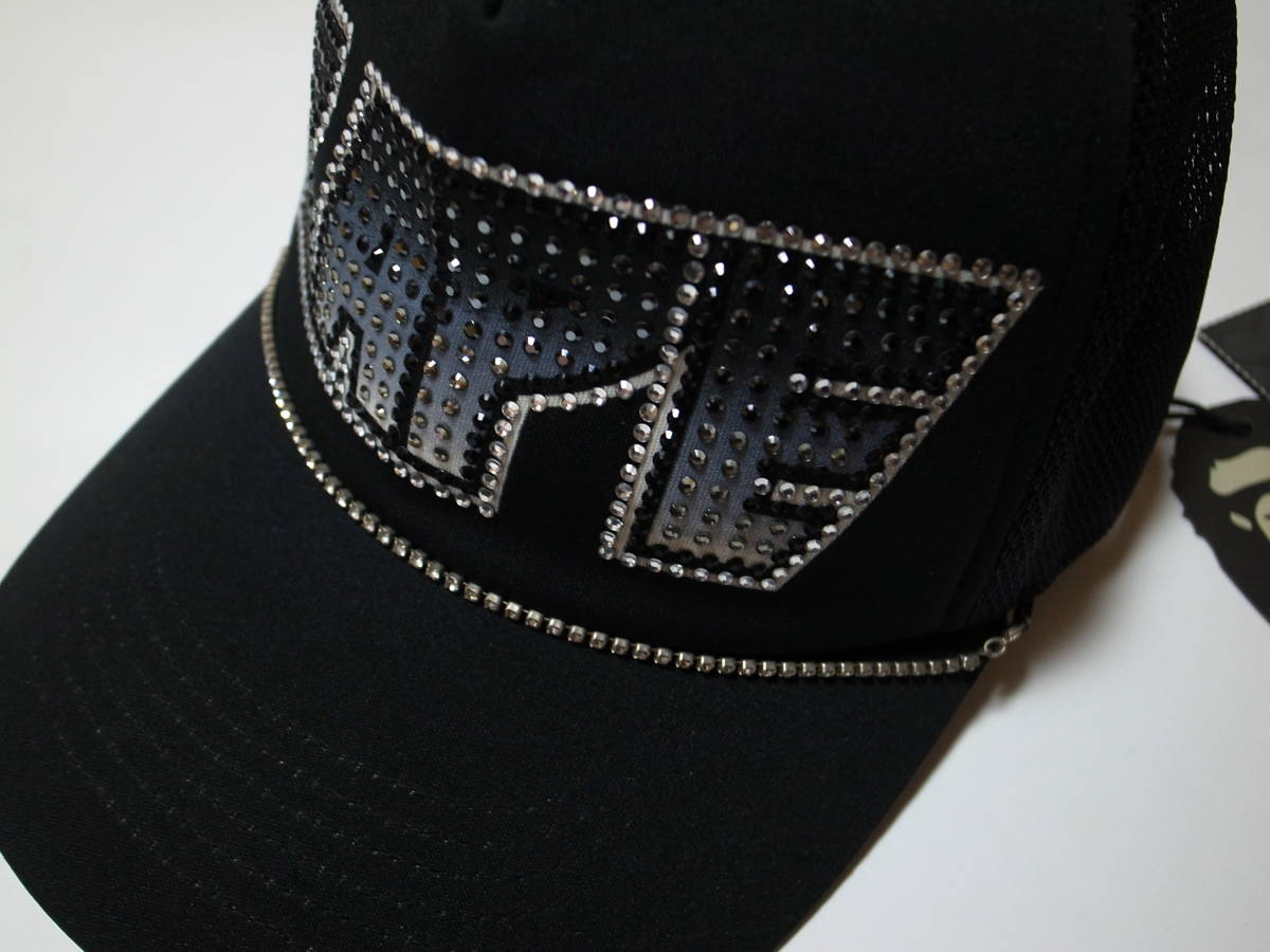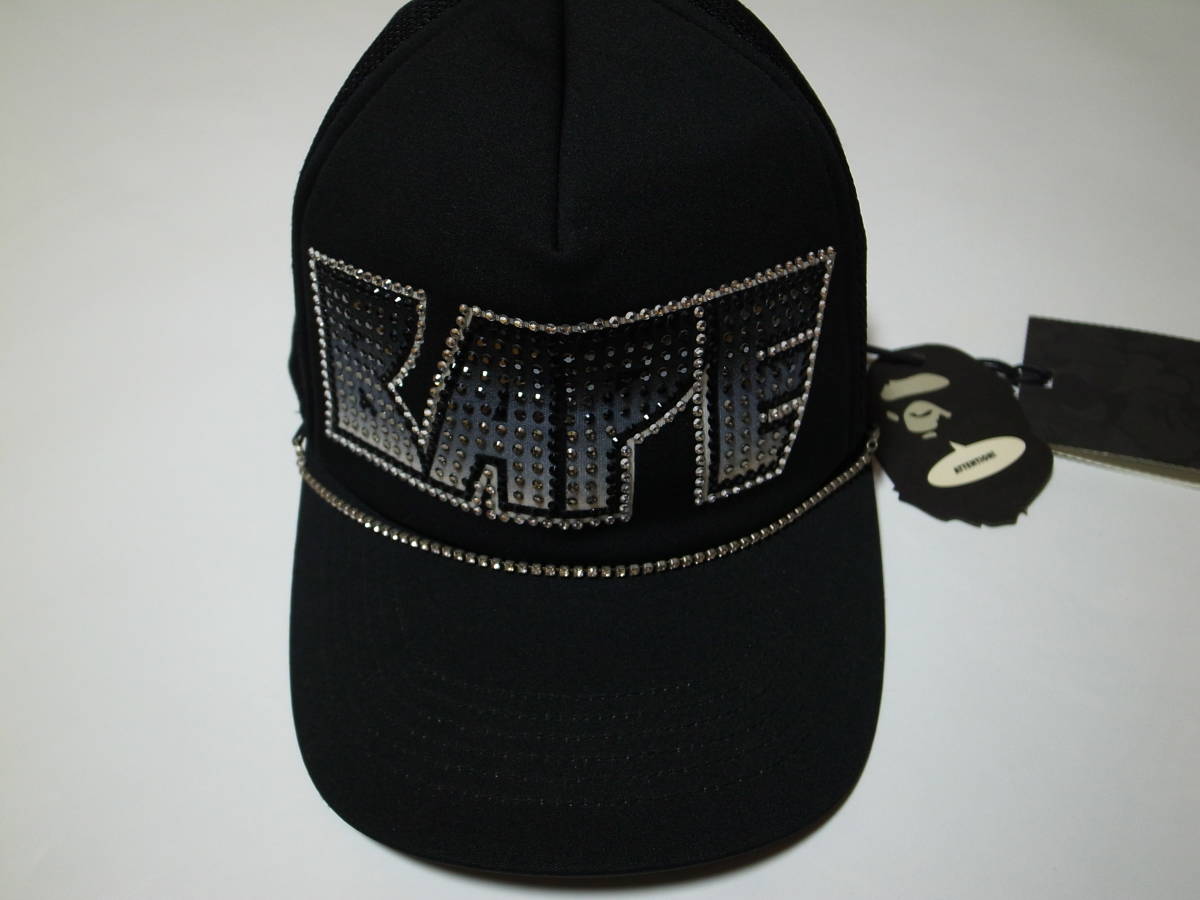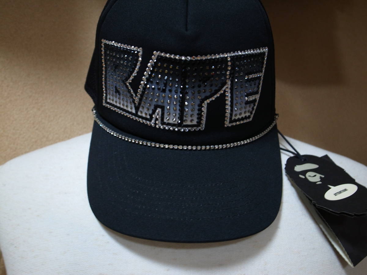 【送料無料】激レア・稀少・初期傑作★A BATHING APE エイプ★ラインストーン スワロフスキー メッシュキャップ★kissロゴ★黒/黒★ BAPE