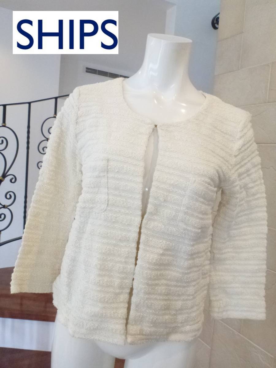 美品 SHIPS シップス ★アイボリー ニット系ジャケット S カーディガン