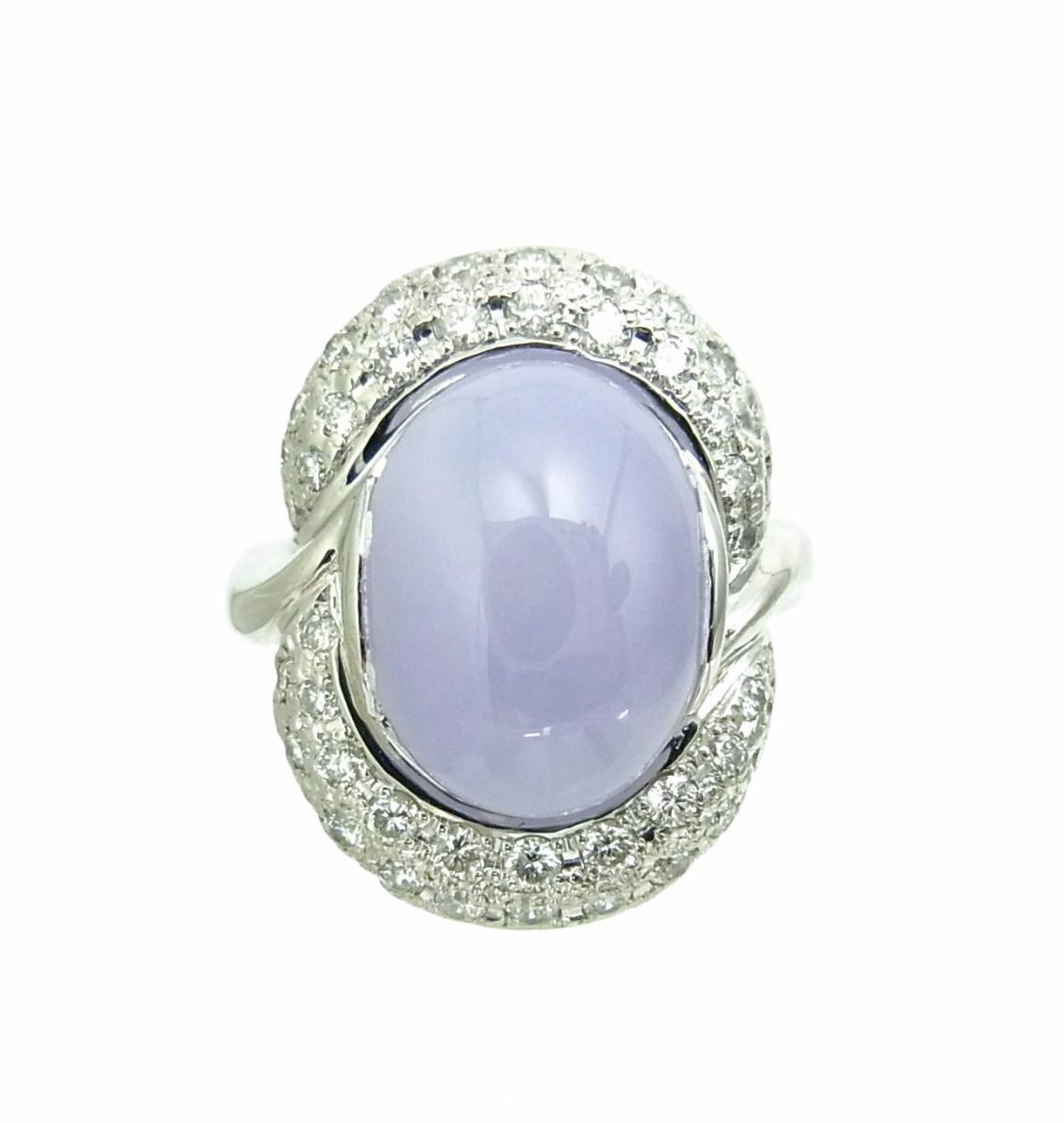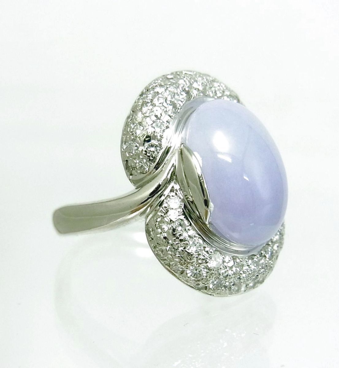 6.796カラット 上質天然ラベンダー翡翠 天然ダイヤ入 プラチナ製リング 卸価格/商品動画あり/送料無料