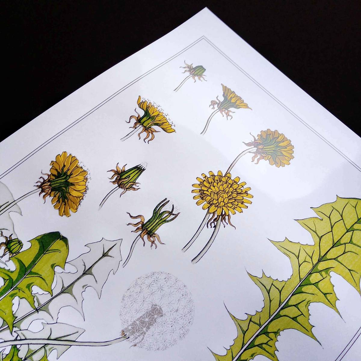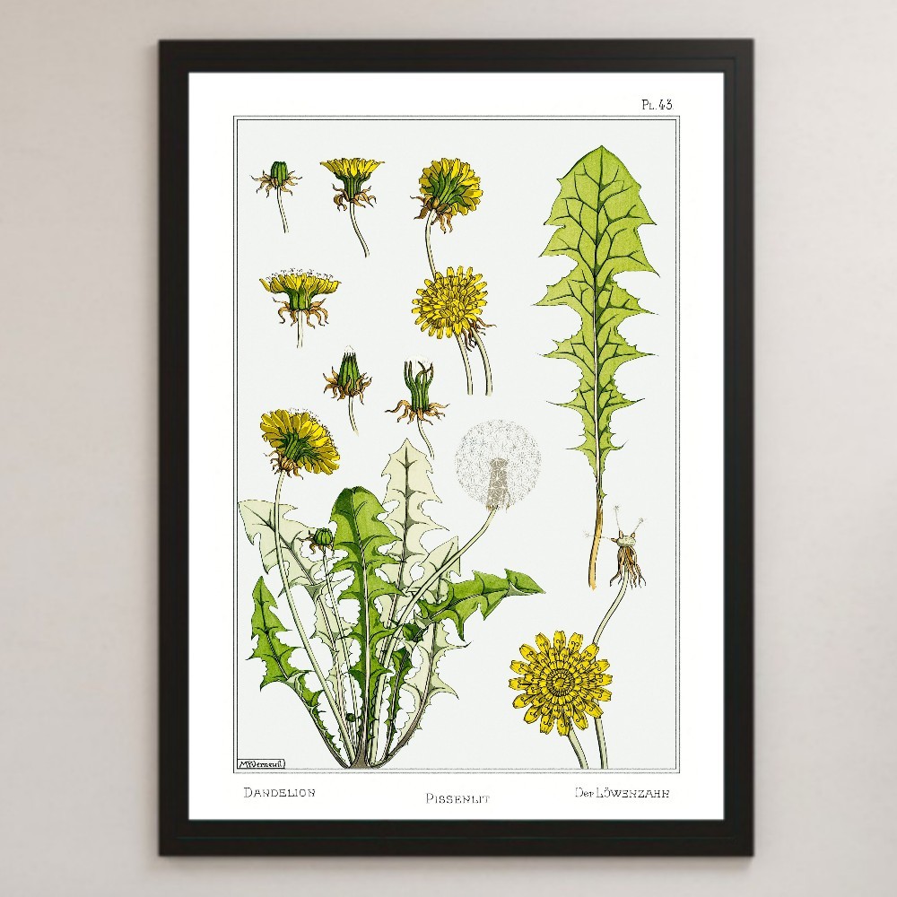 タンポポ ダンデライオン 植物 ビンテージイラスト 光沢 ポスター A3 バー カフェ クラシック インテリア 図鑑 ボタニカル フラワー 花