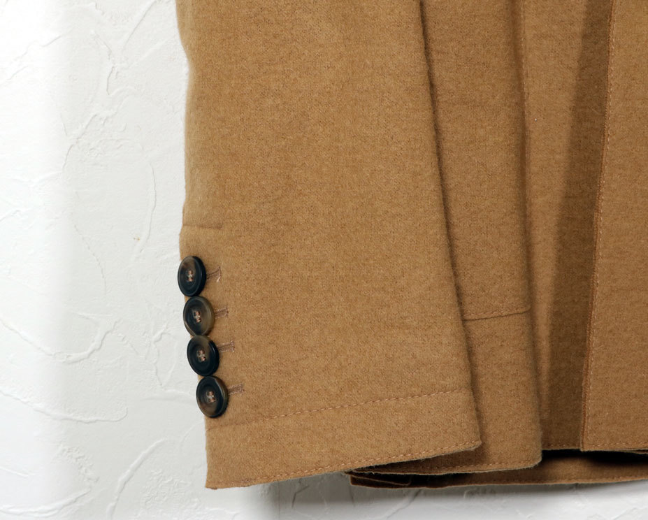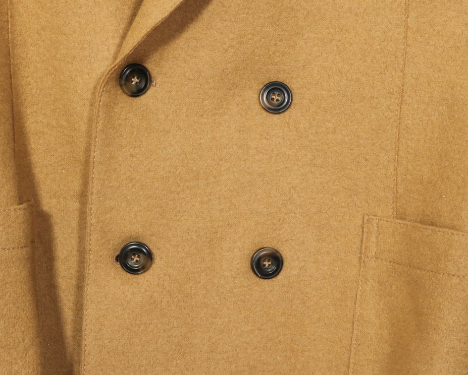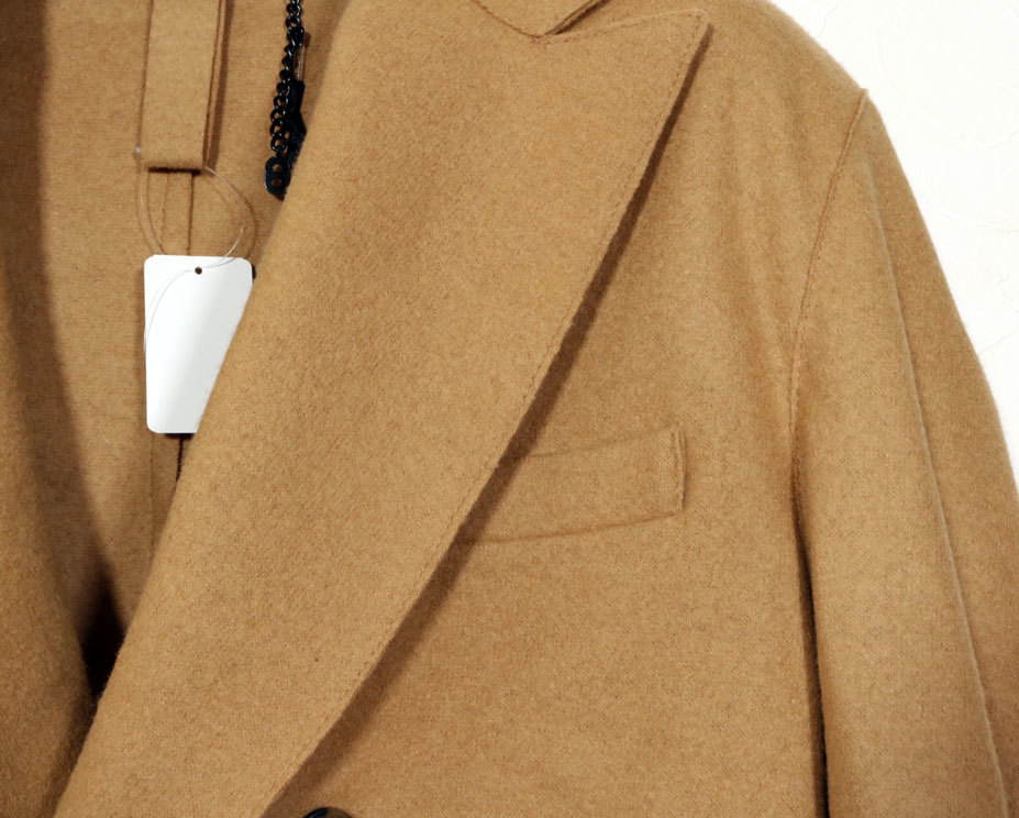 | 新品 made in italy ●国内参考価格 79,200円(税込) ●カラー:キャメルブラウン ダークベージュ ●サイズ:48 平置き実寸 ・着丈:74㎝ ・袖丈:67㎝ ・肩幅:47㎝ ・身幅:56㎝ ●素材: ウール80%/ポリエステル20% ◆ウール混素材を使用したダブルのコートジャケット。 ◆裏地なし(袖裏のみ有り) | |||