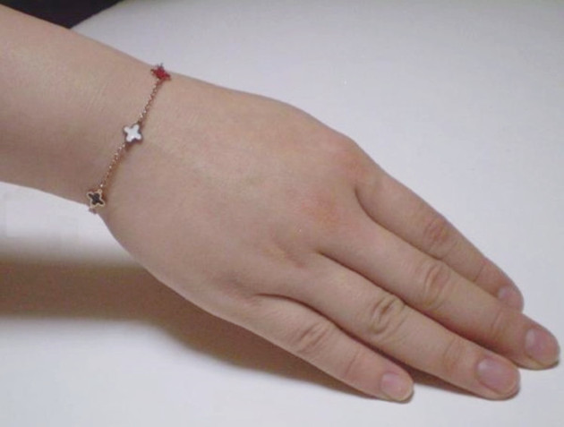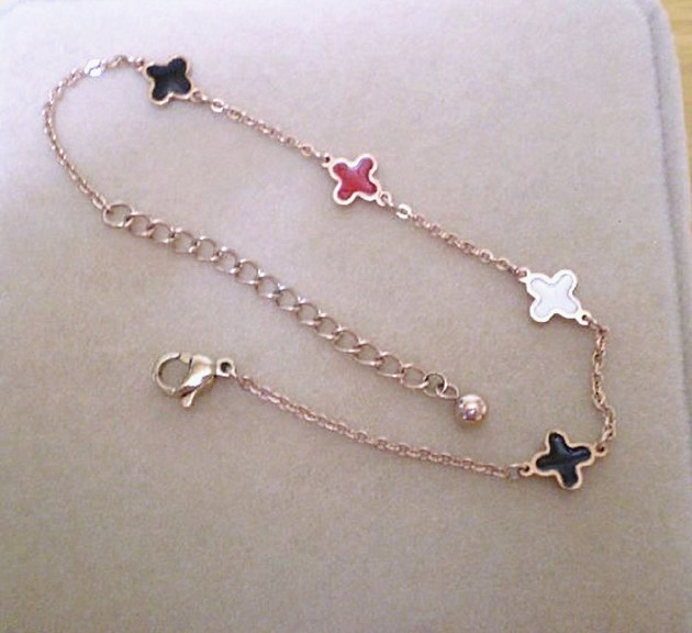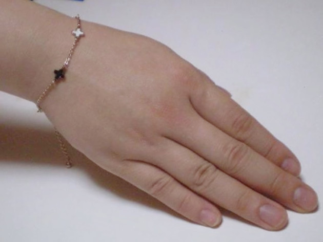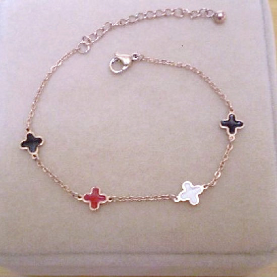 ●金属素材:ステンレス。●カラー :18Kピンクゴールコーティング。●チェーン:長さ約17cm, アジャスター約5cm, 太さ0.1cm, チェーンとトップ着脱不可、全長約22cm.●四つ葉:横約0.7cm、縦約0.7cm 、ぺイント、