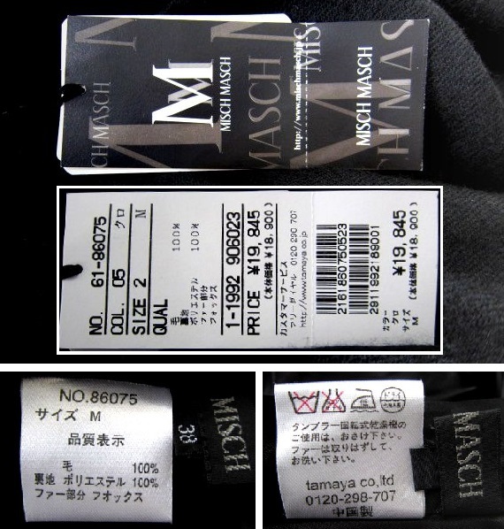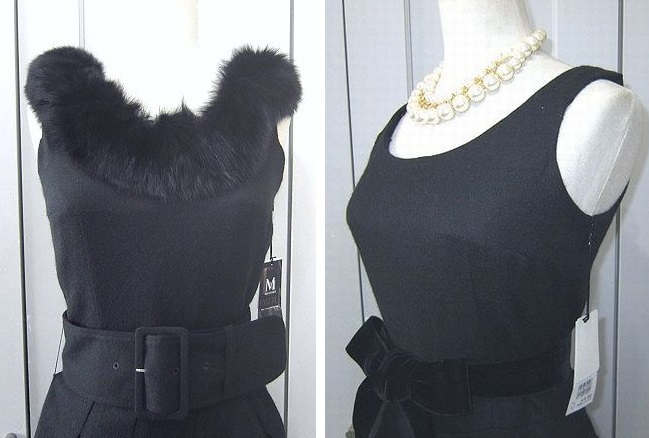 未着タグ付 MISCH MASCH ミシュマッシュ 2WAY ベルト・リボンベルト付 後にリボン フォックスファー取外し可
