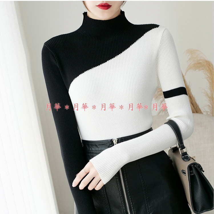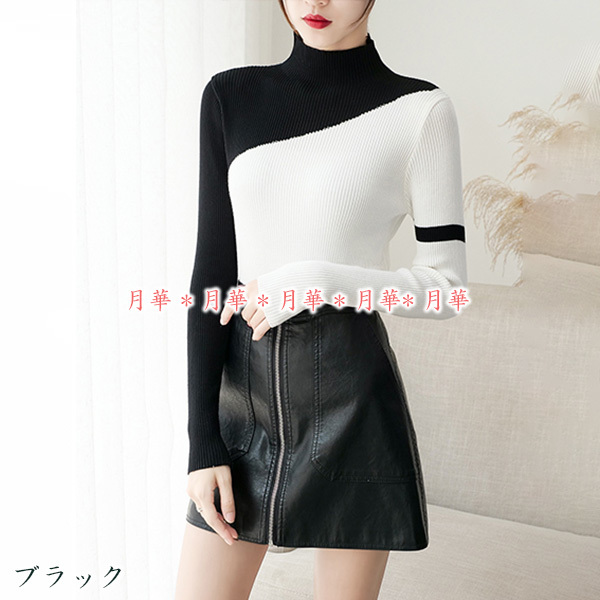 バイカラーの斜めデザインがおしゃれなニットカットソー。